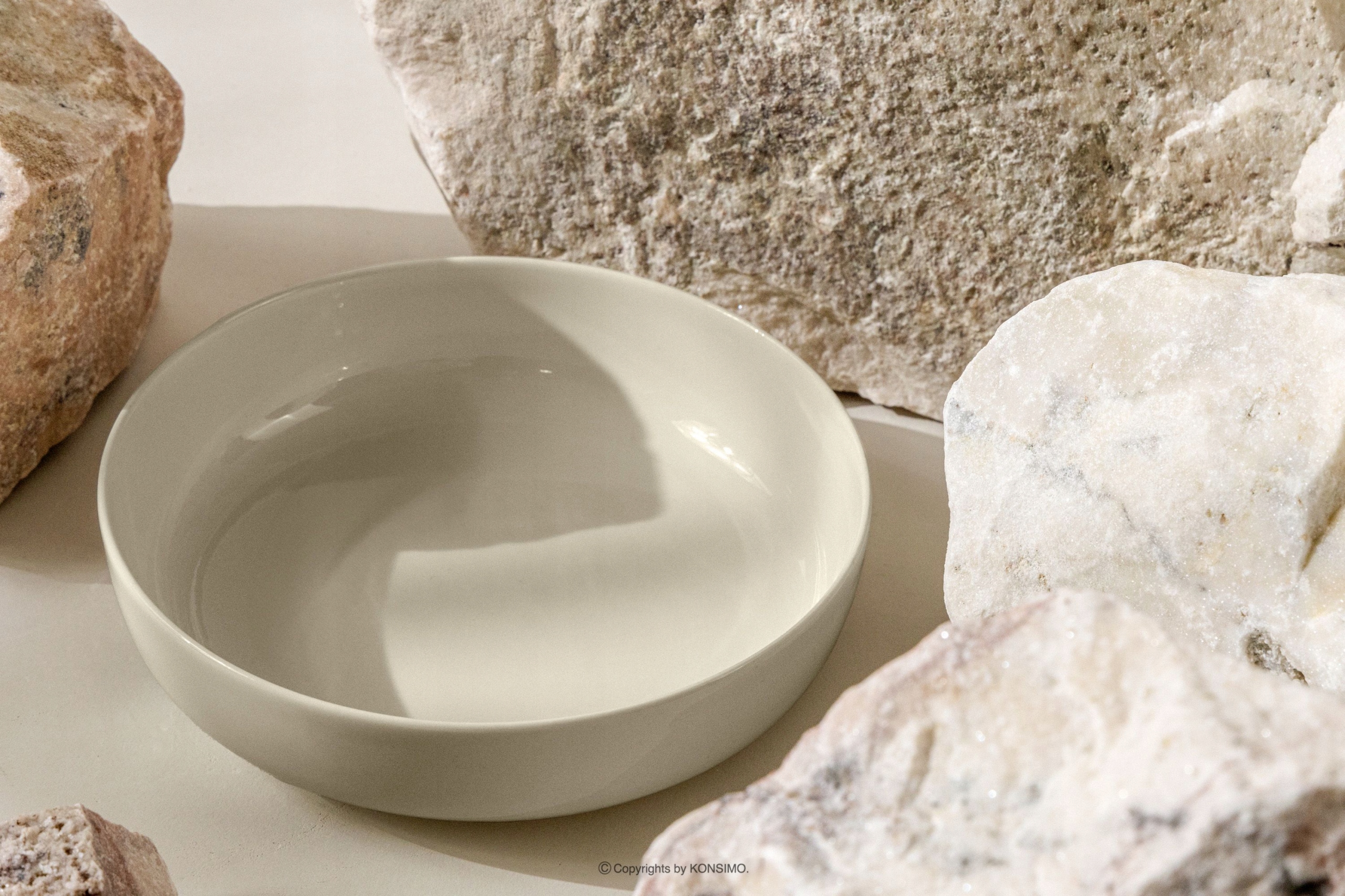 Ви шукаєте ідеальний обідній набір, який додати унікальний стиль вашій їдальні? Бежевий глянцевий столовий сервіз від Konsimo - це відповідь на ваші потреби. Виготовлений з високоякісної кераміки, він поєднує в собі довговічність і позачасовий дизайн, який ідеально вписується в сучасний інтер’єр і традиційне оформлення обіду. Елегантний блиск і мінімалістичні круглі форми тарілок роблять цей обідній набір захватом кожного гостя за столом.