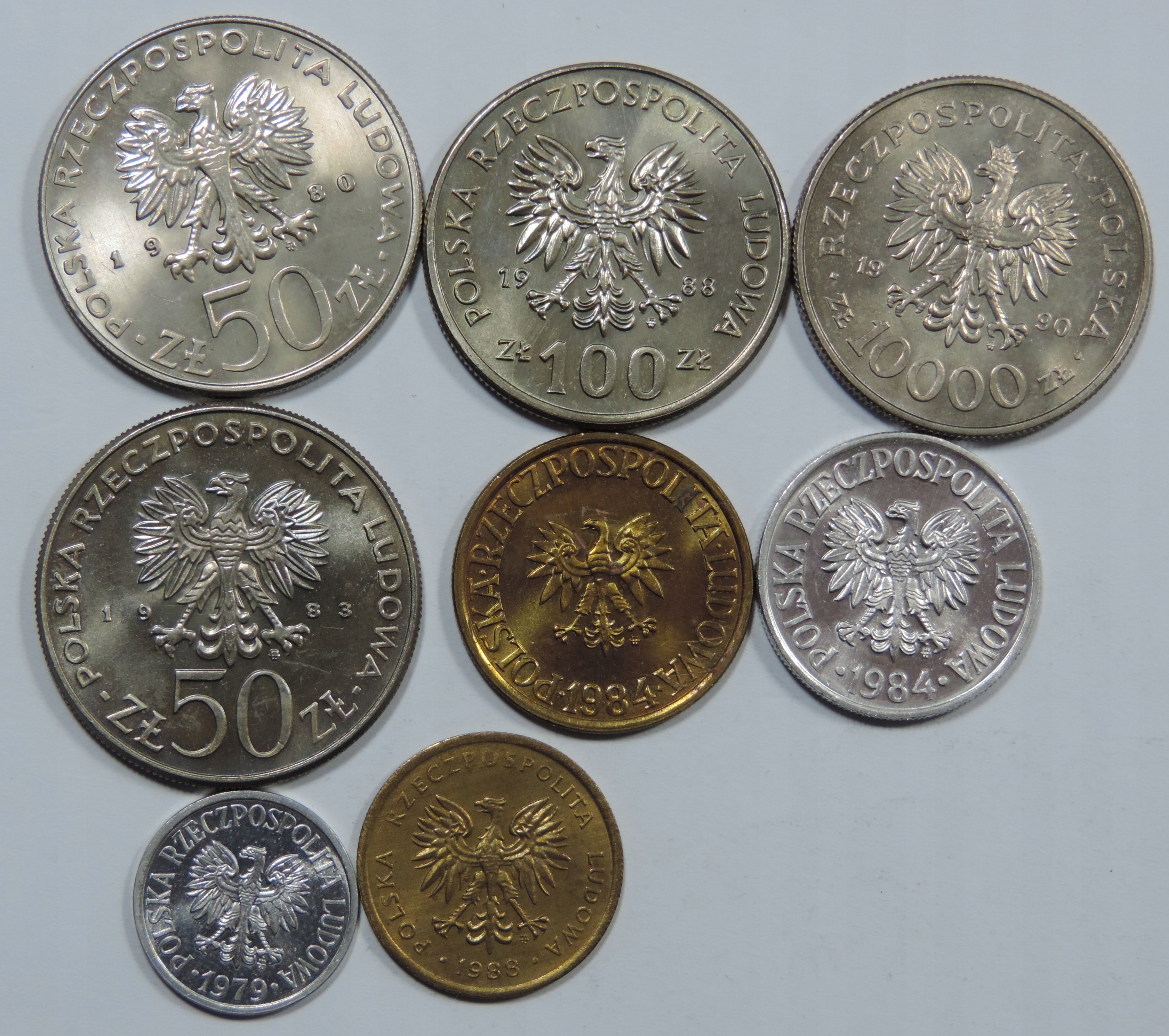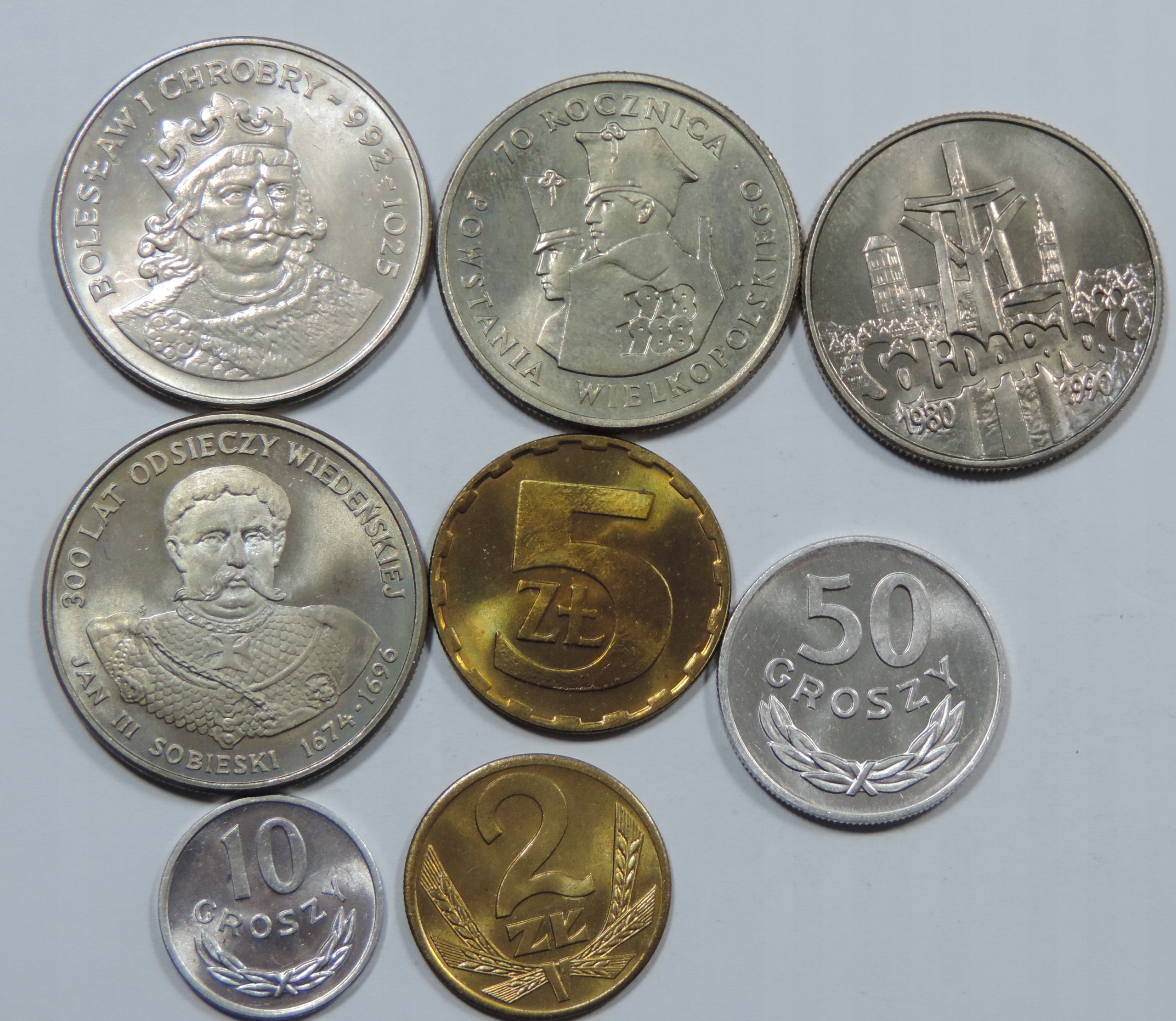 НАБІР ОБРАТНИХ МОНЕТ 8x - POLAND PRL - КОМЕРЦІЙНИЙ - UNC -OY7342