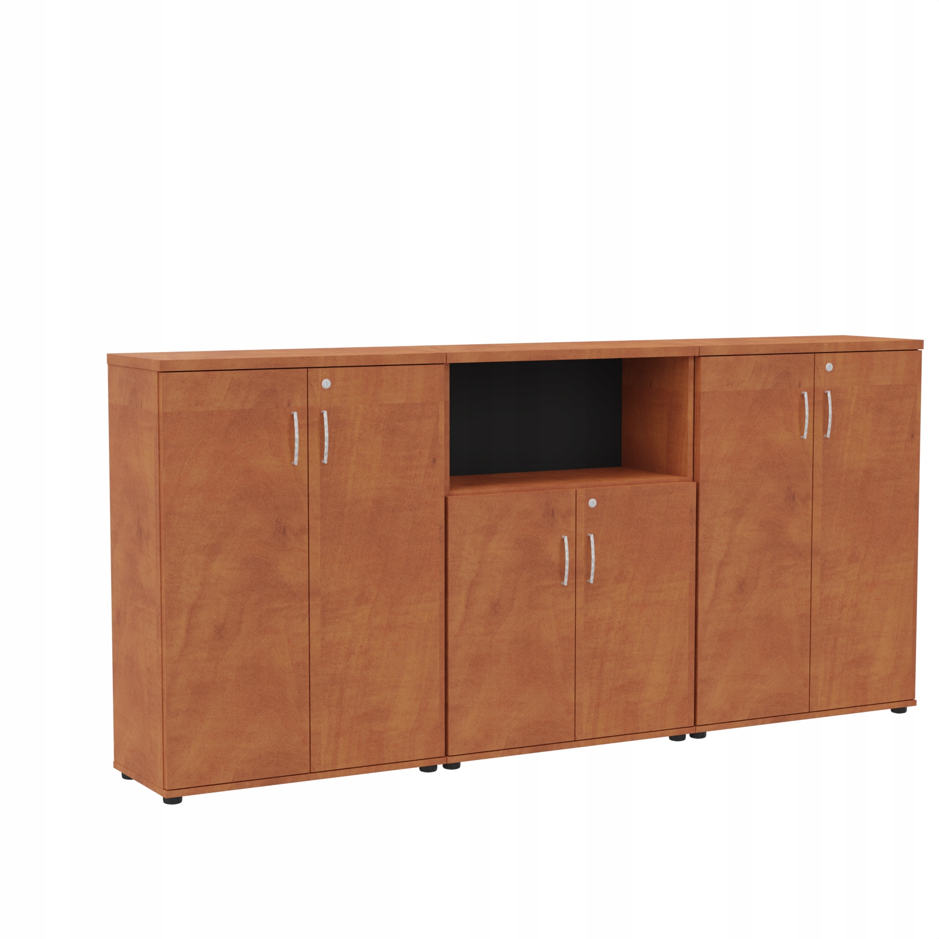 Три закриті полиці замку як стандарт - ідеальне місце для ваших в'яжучих. У кожному шафі ви можете вмістити до трьох рядів (3OH), що дає багато місця для відновлення документів. Одна відкрита полиця ідеально підходить для прикрас, щоб зламати нудний вигляд стелажної стіни. 28 мм вінки - це визначеність суцільних полиць.