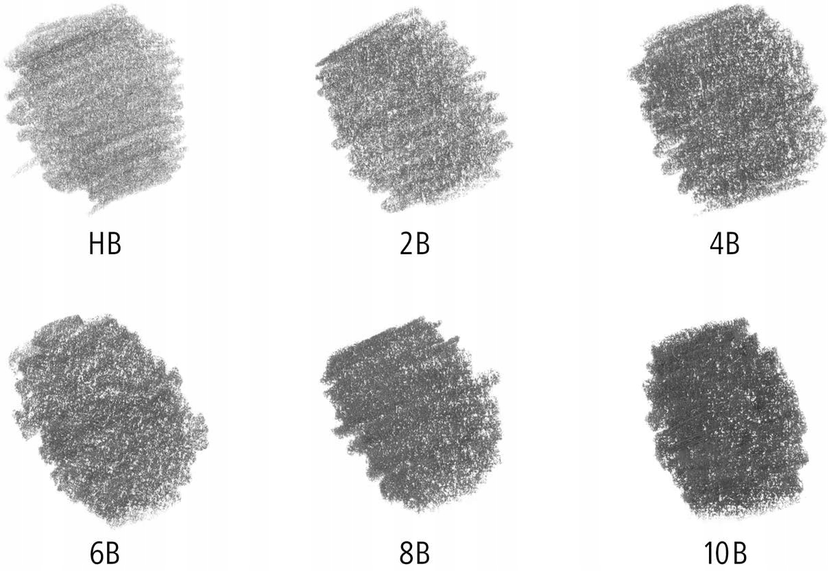 - Графітові олівці без оправи - повністю графітові ручки з рівнями твердості HB, 2B, 4B, 6B, 8B і 10B