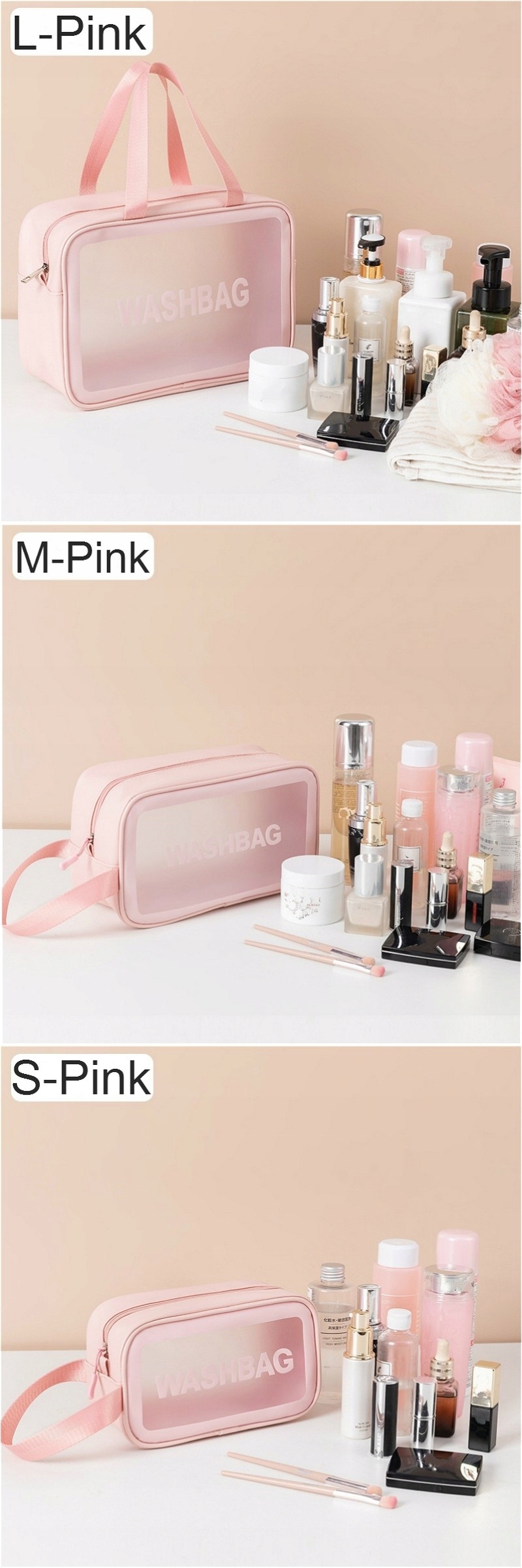 Набір органайзерів для подорожей, розміри SML, 3 водонепроникна косметичка, рожева
