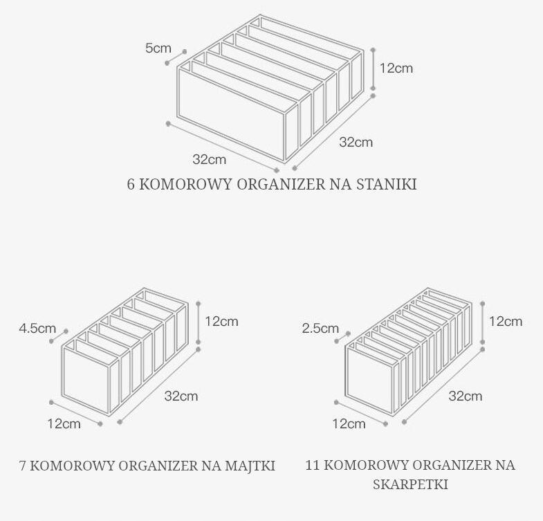 Незалежно від того, чи є у вас велика колекція нижньої білизни, чи лише кілька улюблених комплектів, наш органайзер для білизни надасть вам ідеальне рішення для зберігання. Виготовлений із високоякісного, міцного матеріалу, наш органайзер захищає вашу нижню білизну від пошкоджень, складок і забезпечує тривалий захист.