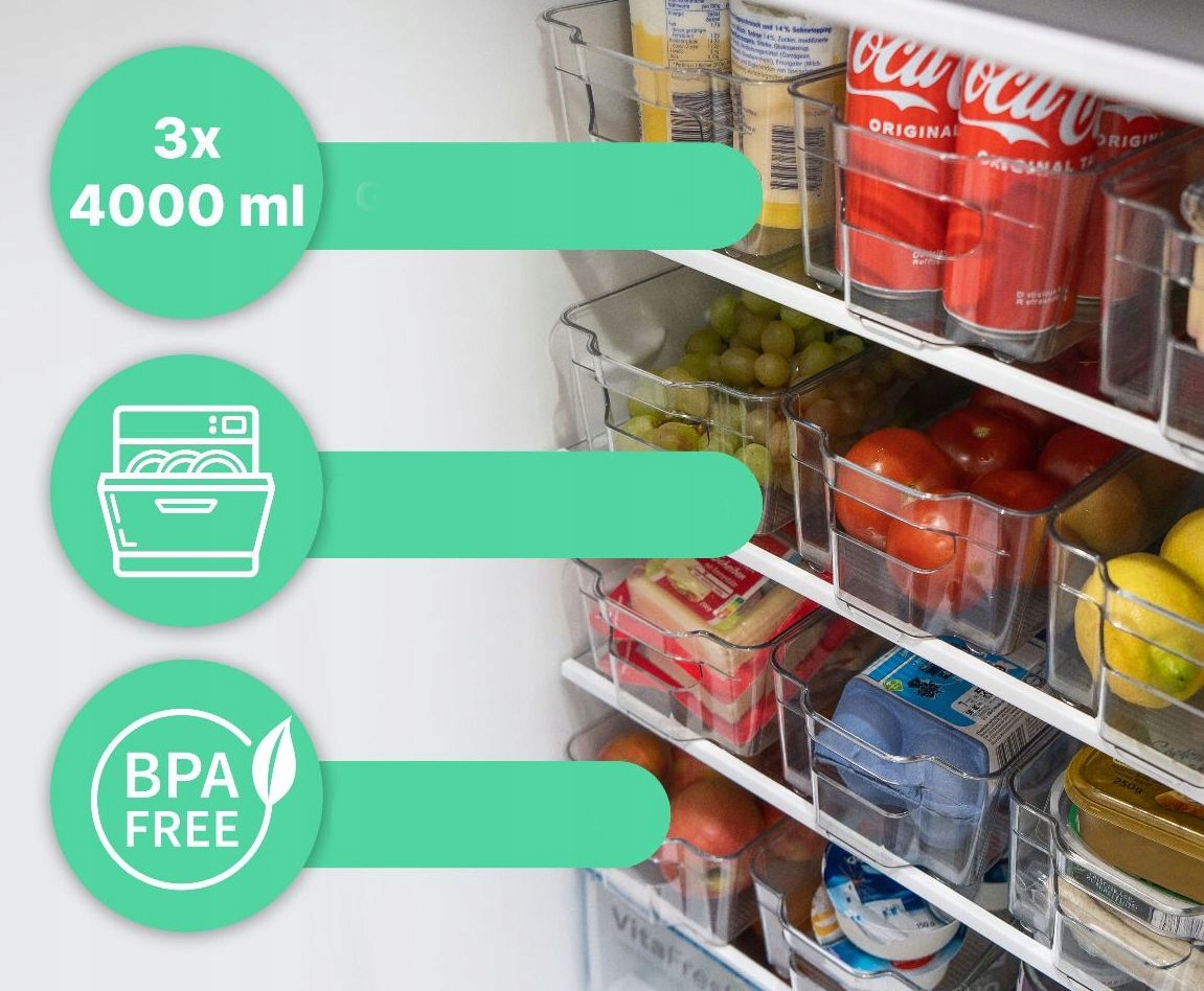 3 контейнери ємністю 4000 мл кожен, призначені для організації їжі - ідеально підходять для холодильника, морозильника або шафи