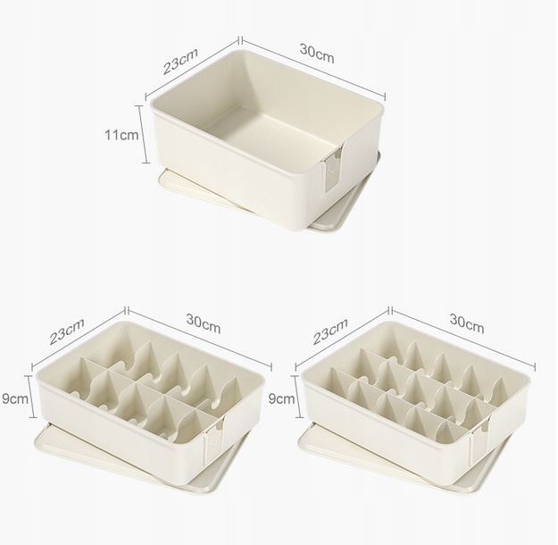 Набір з 3 предметів органайзерів, які допоможуть вам підтримувати порядок у своєму гардеробі. Кожна частина призначена для зберігання різних предметів одягу, таких як шкарпетки, трусики чи бюстгальтери.