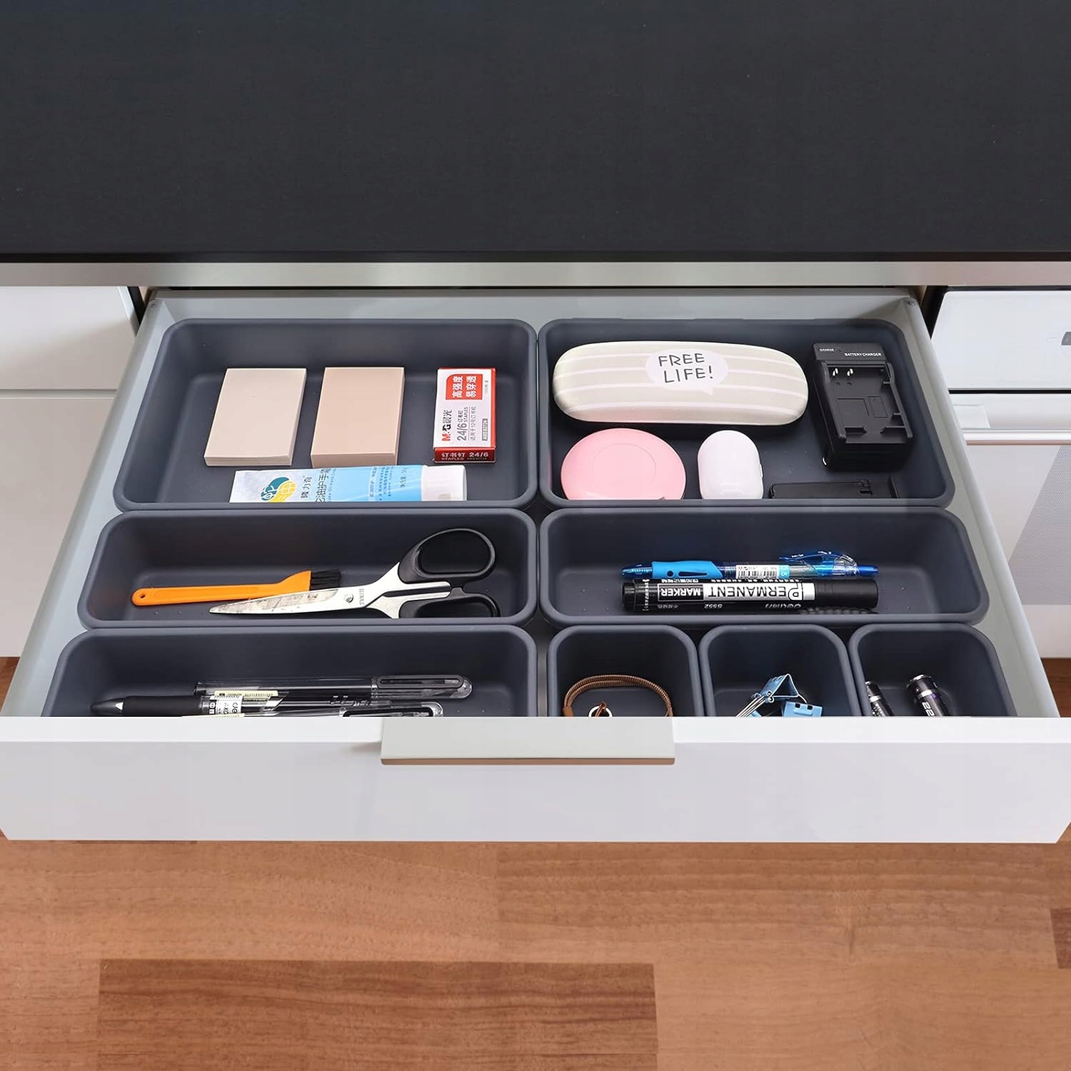набір організаторів для ящика буде відповідати всім вашим очікуванням. Завдяки різним розмірам контейнерів для ящиків ви зможете організувати простір відповідно до ваших поточних потреб.