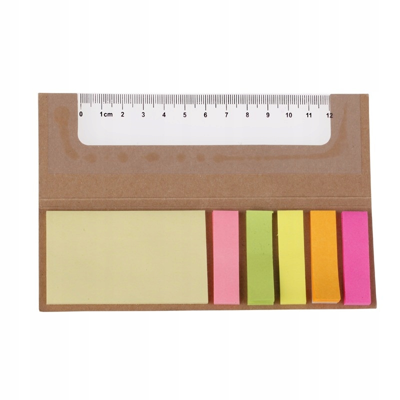 Набір липких нотаток з лінійкою 12 см, 6 наборів по 25 липких нотаток, вага 75 г/м².