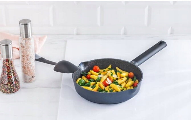Крім того, PAN ідеально проводить і накопичує тепло, і завдяки повному індукційному диску його можна використовувати для всіх видів плит, включаючи індукційні пластини . Диск, що використовується, завдяки повній магнітній провідності, забезпечує краще використання енергії до 40%. Важливо, що використовуване ніздрічне покриття дозволяє смажити з мінімальною або повною відсутністю споживання жиру , що, безсумнівно, перетворюється на здоровий спосіб життя. Ціле доповнюється новою та надзвичайно корисною цікавою конструкцією з екранами для точного лиття жиру або соусу . Ручка, повністю виготовлена з матеріалу ПП, який не проводить тепло, і використовувала приємне для м’якого дотику дотику, що забезпечує певну та зручну зчеплення .