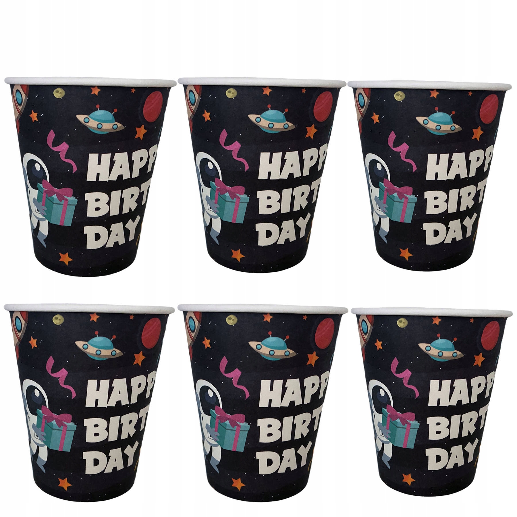⭐ Набір із 6 паперових стаканчиків із зображенням космонавта, об’ємом 200 мл.