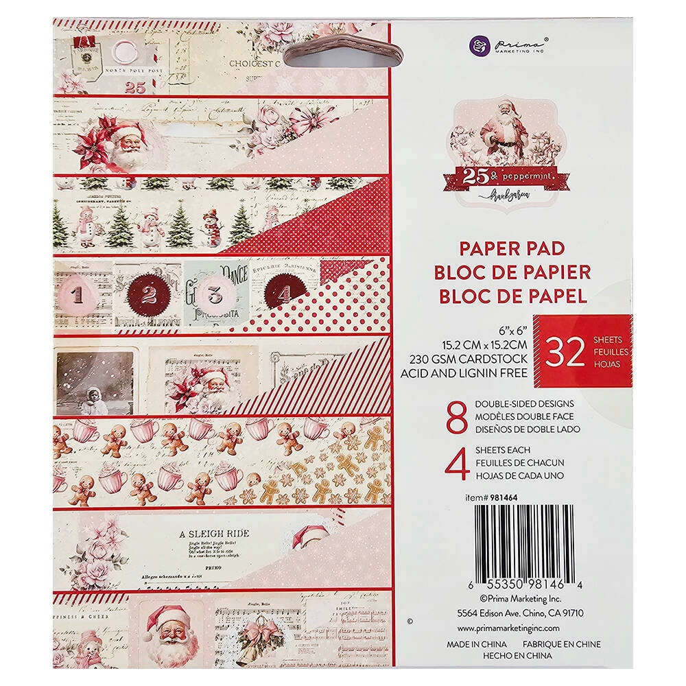 НАБІР ПАПЕРУ ДЛЯ СКРАПБУКІНГУ 15х15см - Prima - Peppermint
