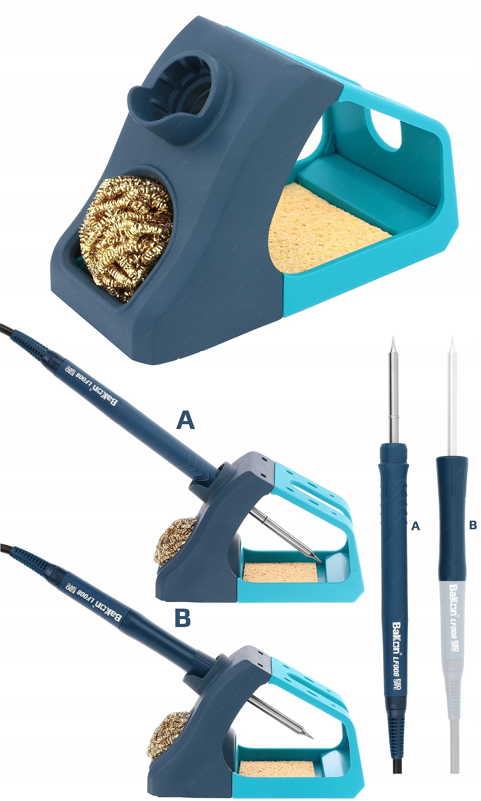 Підставка має латунний засіб для чищення наконечників і губку, яку потрібно змочити водою перед використанням. Плюс