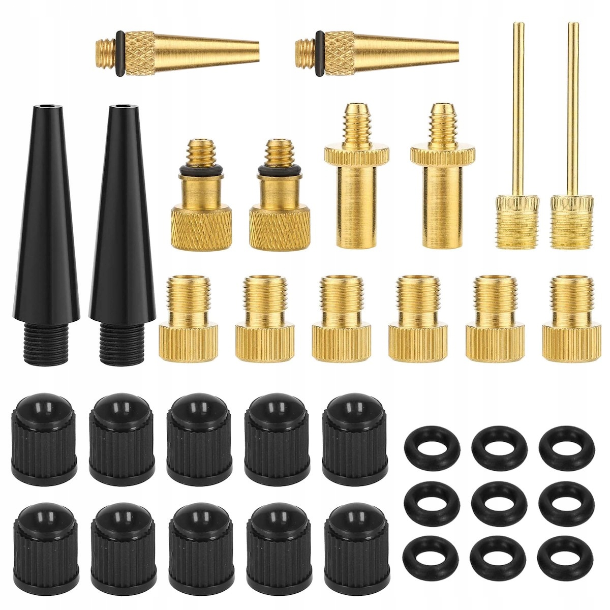 Набіруніверсальних адаптерів для накачування Springos® є необхідним аксесуаром для кожен велосипедист або любитель велосипедного спорту. Практичний набір допоможе вийти з багатьох утисків і кризових ситуацій. Поставляється в компактному сумочці для зберіганнящо дозволяє завжди мати продукт під рукою.