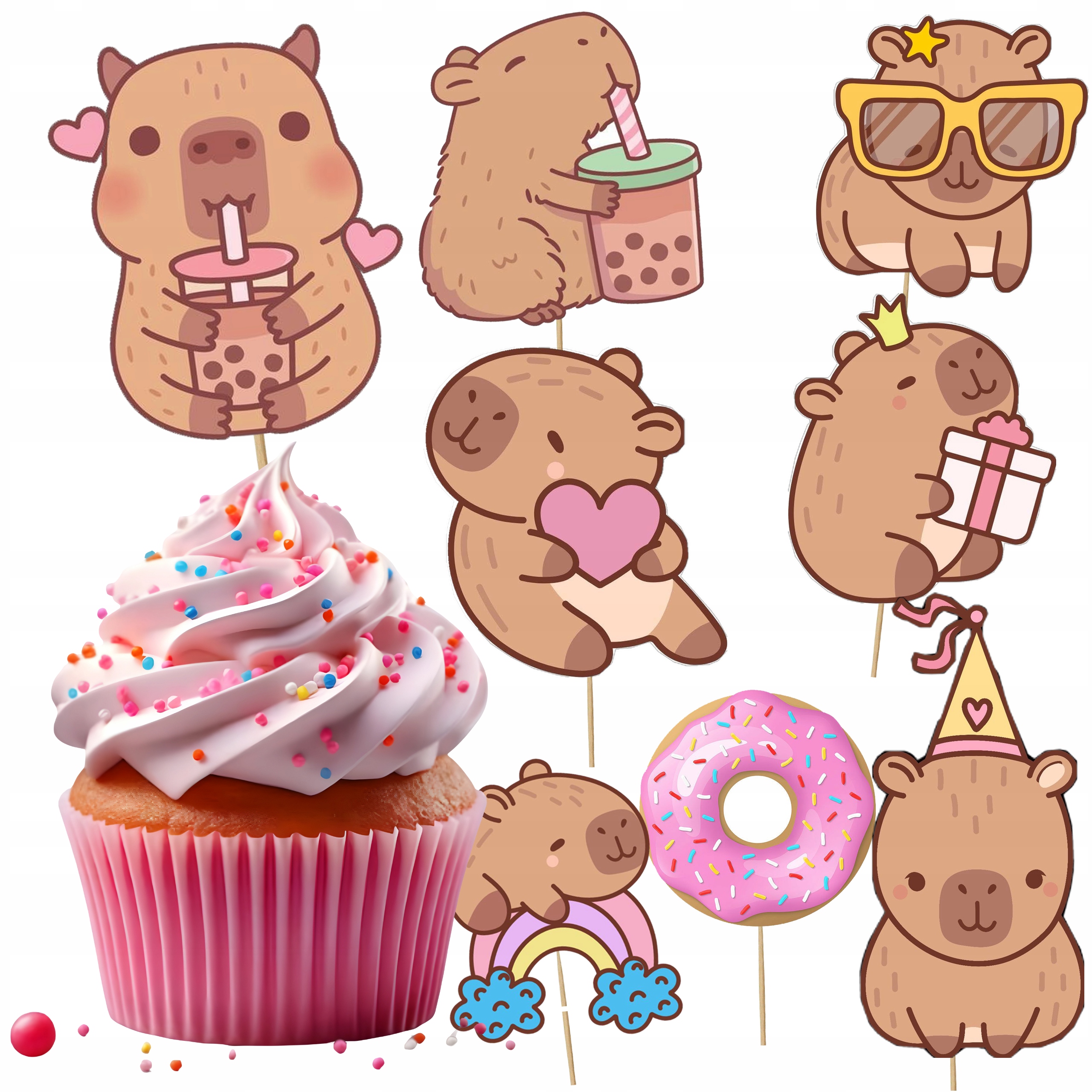 CAPIBARA CAKE TOPER CAPIBARA CHARACTER SET 8 pcs