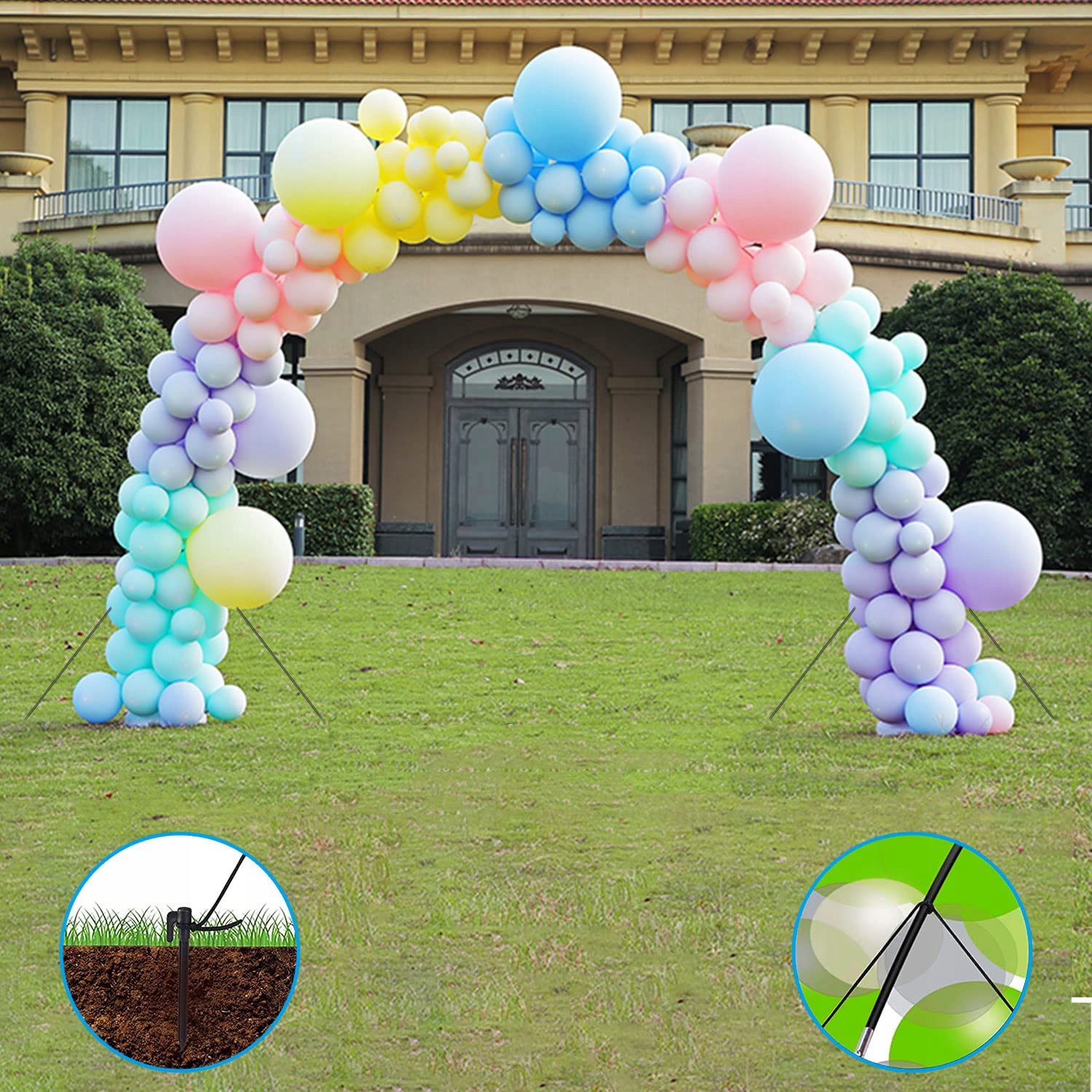 Просте встановлення та регульований розмір: висоту та ширину арки повітряної кулі можна регулювати, регулюючи відстань між основами (або складаючи волокнистий стрижень). Діапазон регулювання від 2 до 3 м, ви можете вибрати потрібну ширину та висоту для розміщення повітряних куль.