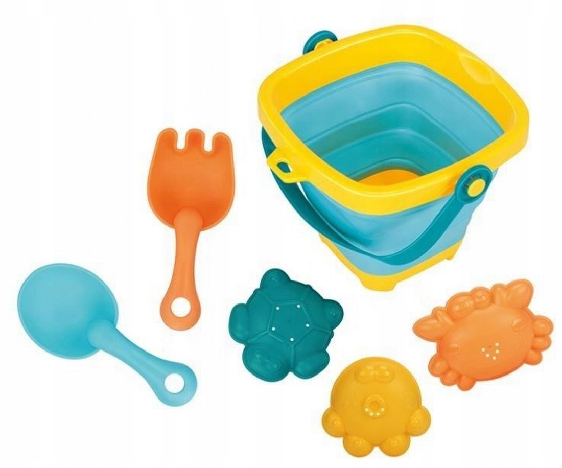 - Комплектація: відерце складається, займає мало місця в дорозі, забезпечує все необхідне дитині для ігор у піску, позбавляє від необхідності шукати додаткові аксесуари.