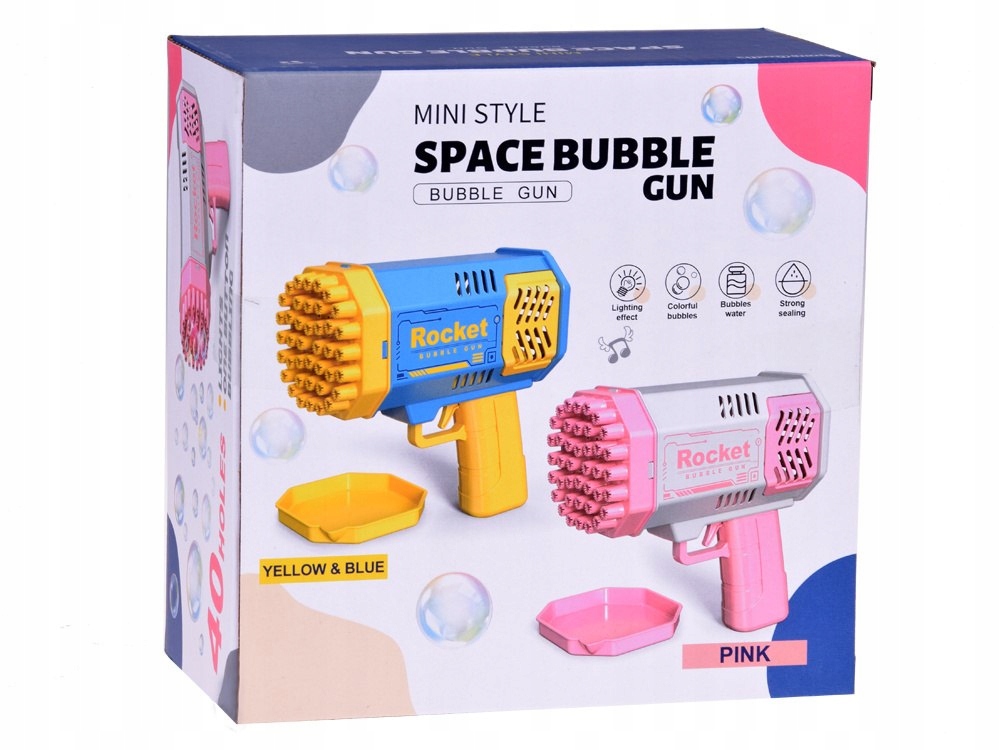 Тож як створити ці чудові райдужні кулі, які можуть підніматися до неба? Це просто! Усе, що вам потрібно зробити, це налити невелику кількість рідини, що входить до набору, у рожеву неглибоку миску та занурити в неї передню частину пістолета. Потім прицільтесь і натисніть на спусковий гачок. Дивовижне видовище постане перед нами! Сферичні мерехтливі фігури вилітають із 40 отворів, змусивши багатьох дітей кричати від радості! Хоча дорослі також будуть дуже вражені.