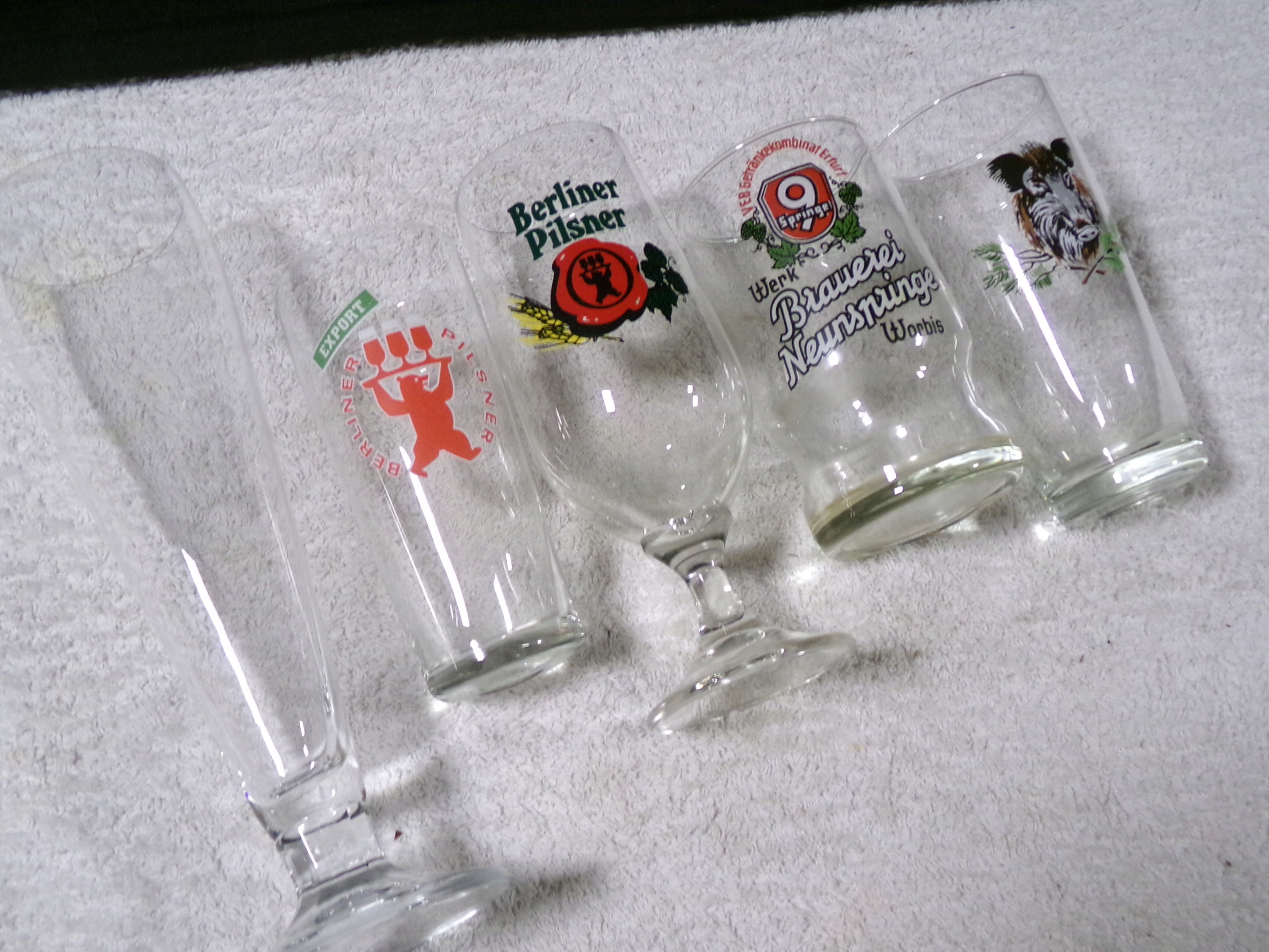 Набір пивних келихів висотою від 12,5 до 23,5 см, діаметром центру від 5,5 до 6,5 см, місткістю від 200 до 300 мл, вагою 0,76 кг. Дуже хороший стан, без пошкоджень.