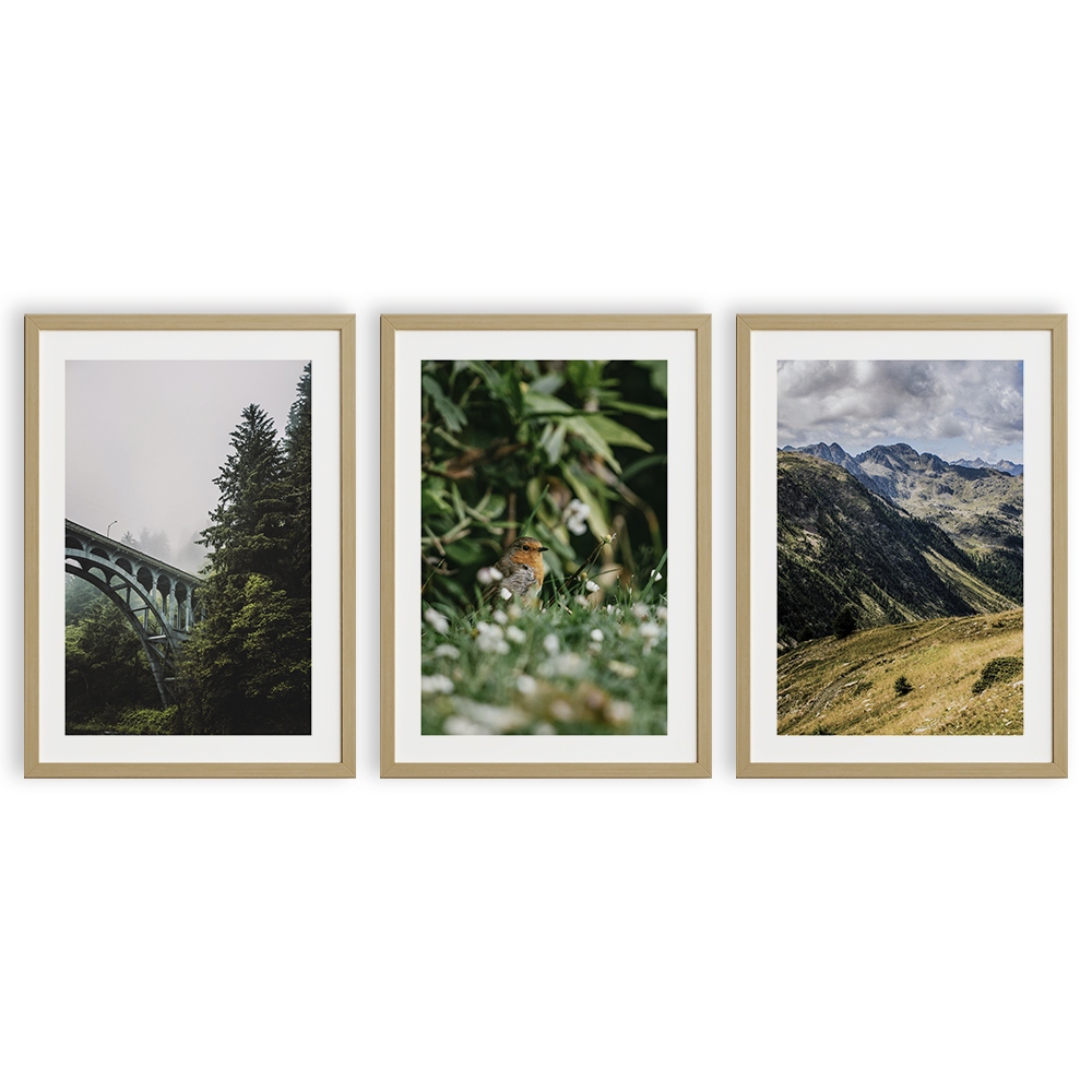 НАБІР ПЛАКАТІВ А4 ПРИРОДА ГОРИ ЛІС ПТАХ МІСТ КАРТИНА