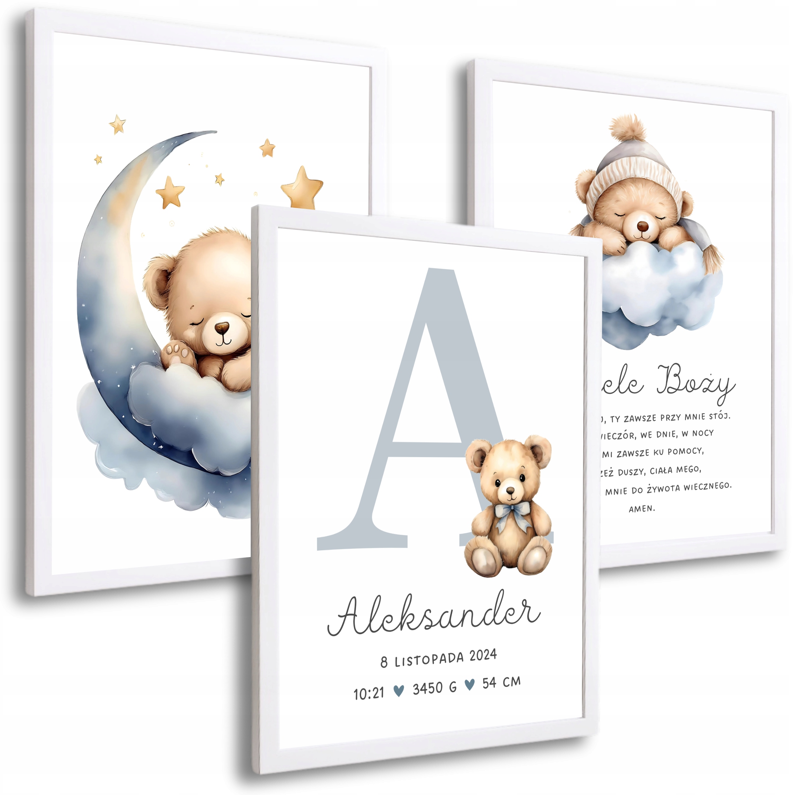 - Теми: настінні прикраси, плакати для дитячої кімнати / дитини, плакати з плюшевими ведмедями, персоналізовані прикраси для стін, подарунок на хрещення, сині плакати, акварельні плакати, плакати з іменем дитини, плакат з молитвою "ангел бог"