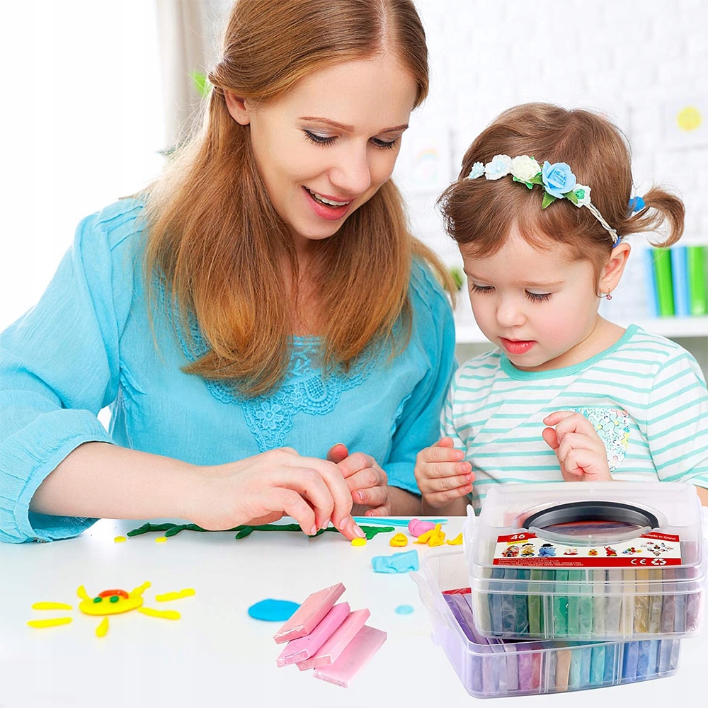 - 46 шматків запеченої в духовці кольорової глини (28 г/шт.), 1 подвійна коробка для зберігання, 5 інструментів для ліплення та 40 аксесуарів ювелірні вироби зручно зберігати в красивій прозорій пластиковій коробці для зберігання.