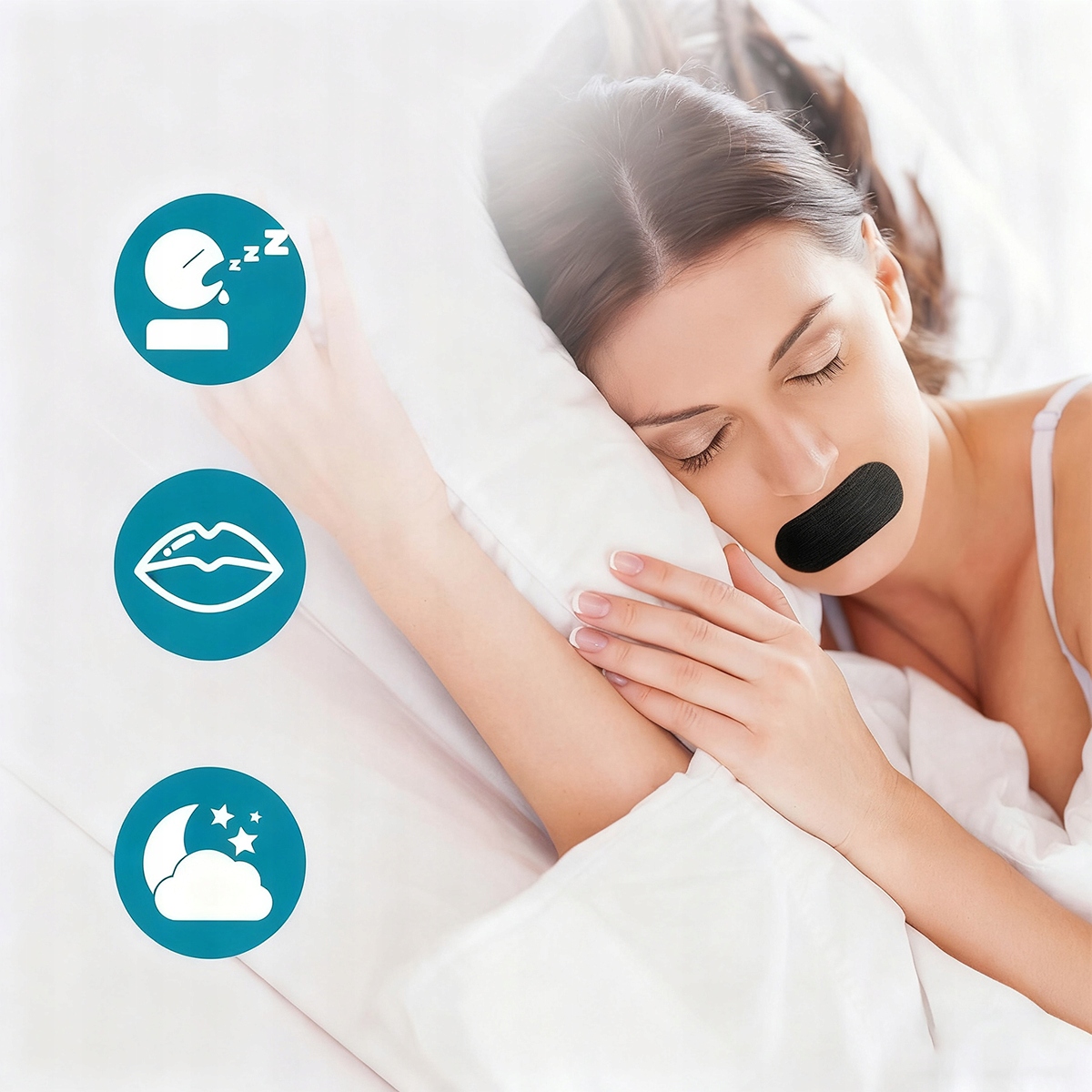 Дихання ротом може призвести до ряду симптомів, таких як вдихання бактерій, хропіння, слинотеча, сухість у горлі та навіть порушення сну. Цей ротовий пластир ефективно запобігає диханню ротом вночі та захищає якість вашого сну.