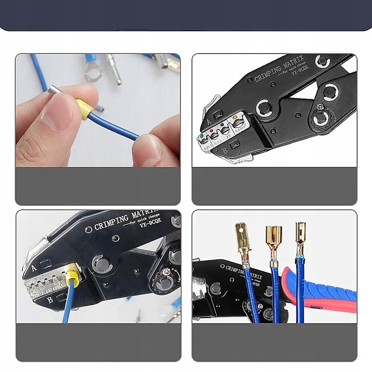Широке використання: Набір інструментів затискання ідеально підходить для проектів електричних кабелів, таких як саморобні, електроніка, модифікації транспортних засобів кемпінгу, раси RC, аудіо обладнання автомобіля, мотоцикли та не тільки.