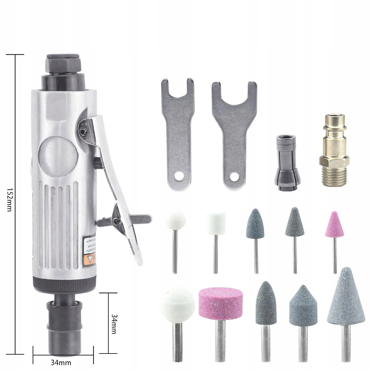 Набір включає 10 різних шліфувальних наконечників, що позбавляє від необхідності купувати додаткові аксесуари. Різноманітні форми та розміри дозволяють адаптувати інструмент до конкретного завдання.