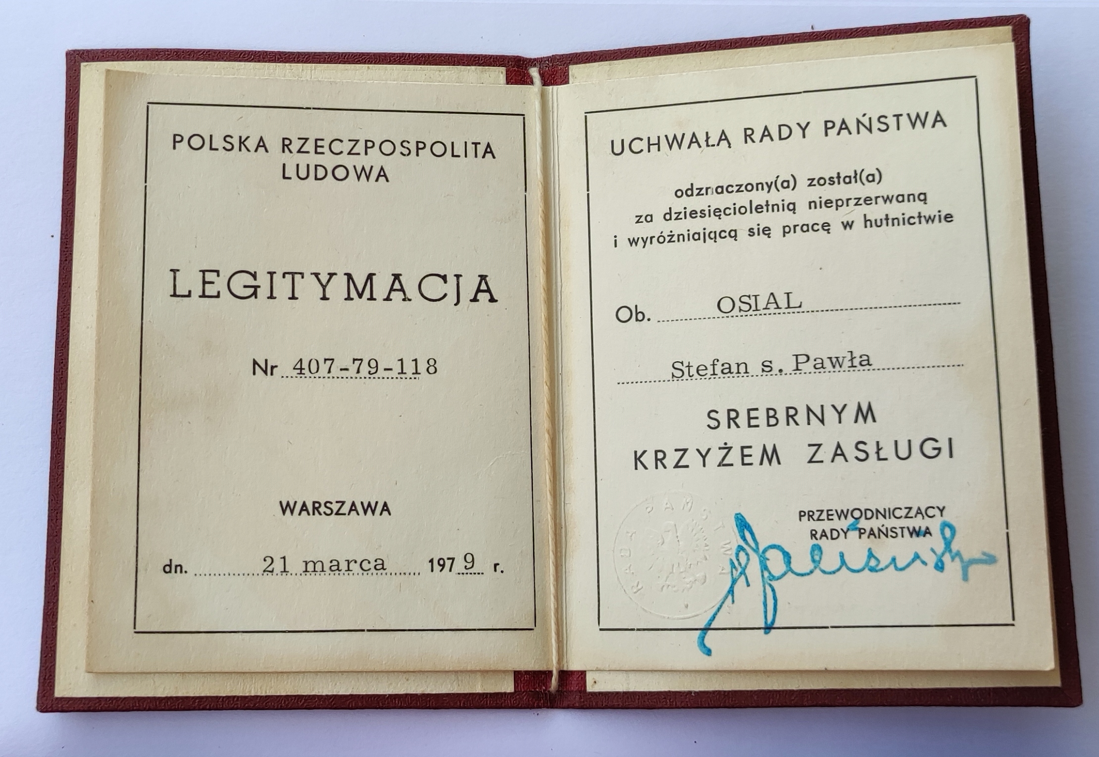 Набір подання Срібного хреста заслуг польської народної республіки. Даючи С.О.
