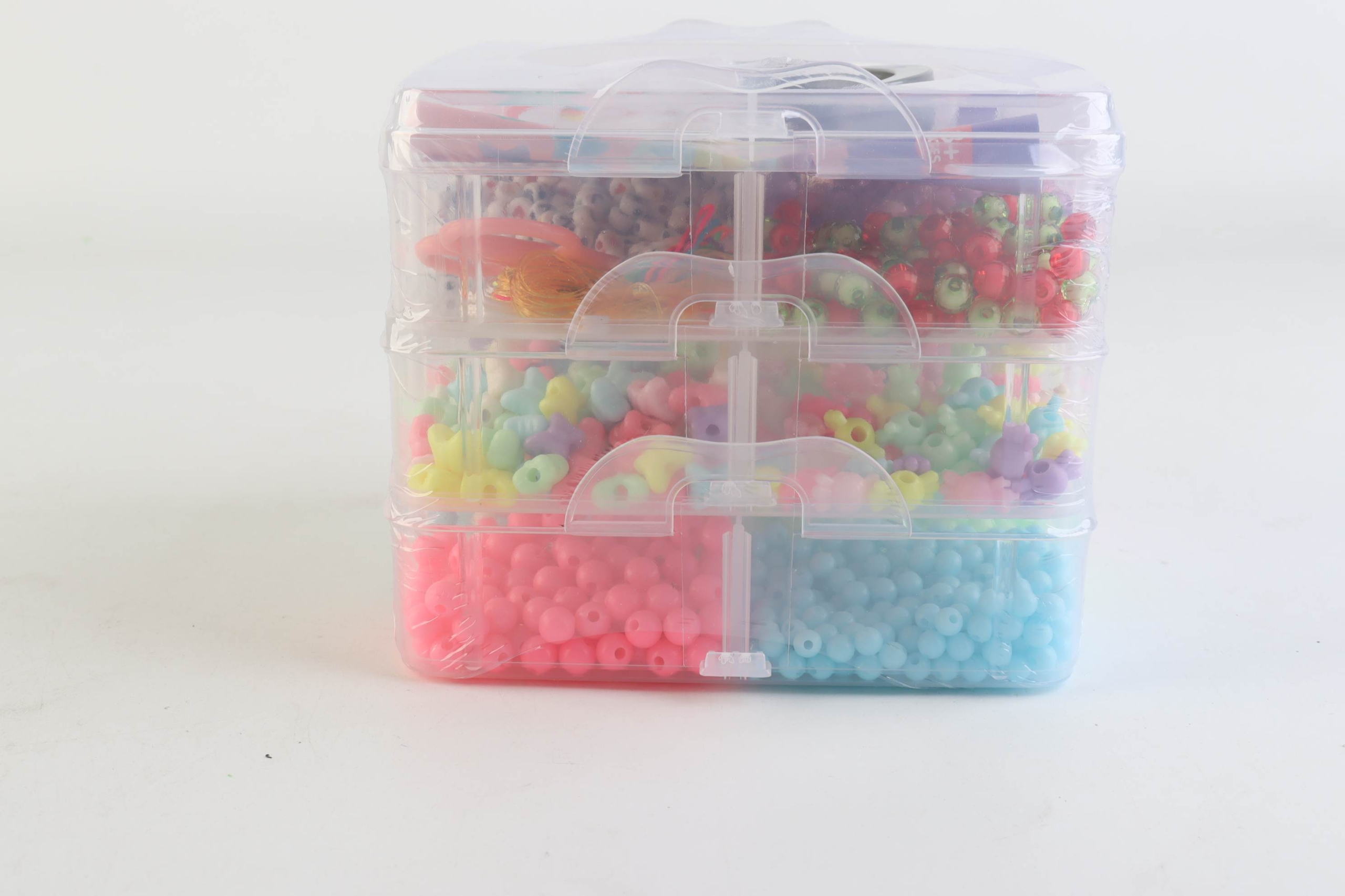 - ✅Органайзер у формі скрині з ручкою, наповнений гарними барвистими намистини,