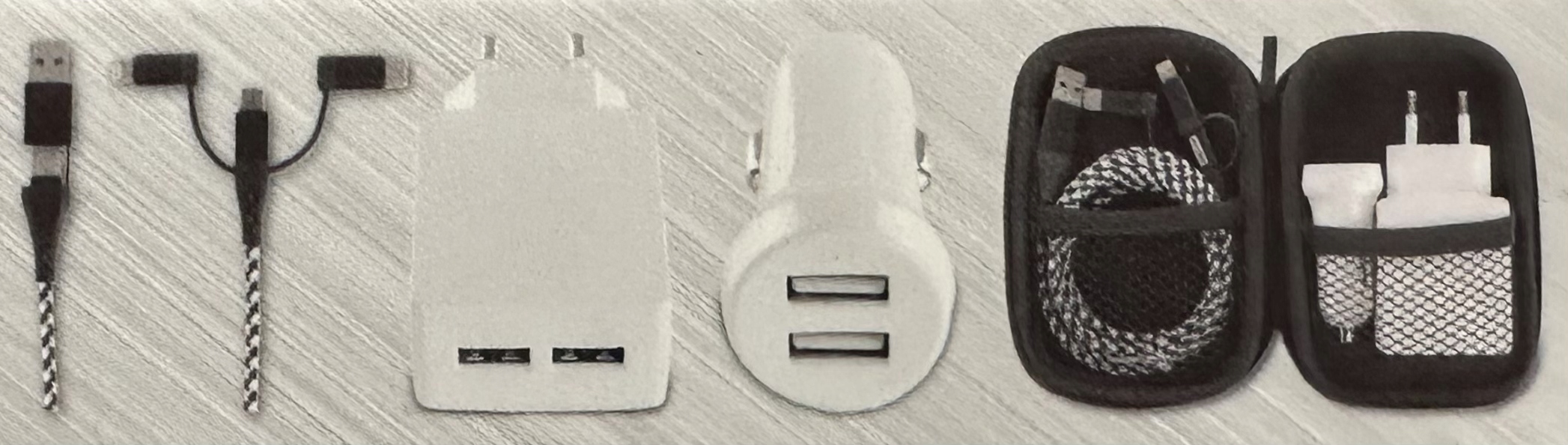 Ми представляємо вам наш практичний набір туристичних зарядних пристроїв, які забезпечать вам повну свободу завантаження електронних пристроїв під час подорожі. Цей набір складається з 4 різних елементів , що надає універсальні можливості зарядки в будь -якому місці та часу.
