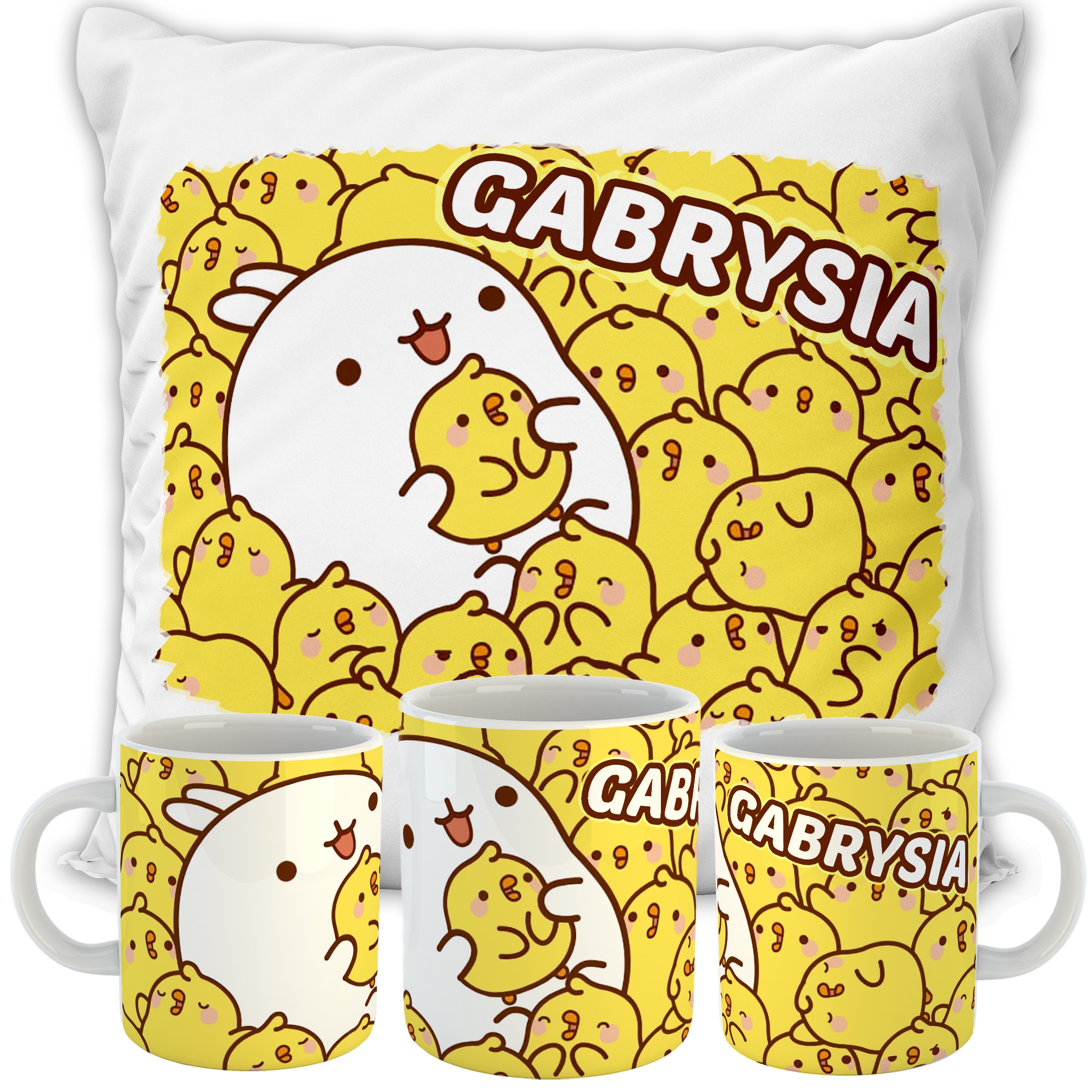 НАБІР ПОДУШКА + ГРУЖКА MOLANG PIU PIU ІМЕННИЙ ПОДАРУНОК КРОЛИК КУРКА ДЕНЬ НАРОДЖЕННЯ