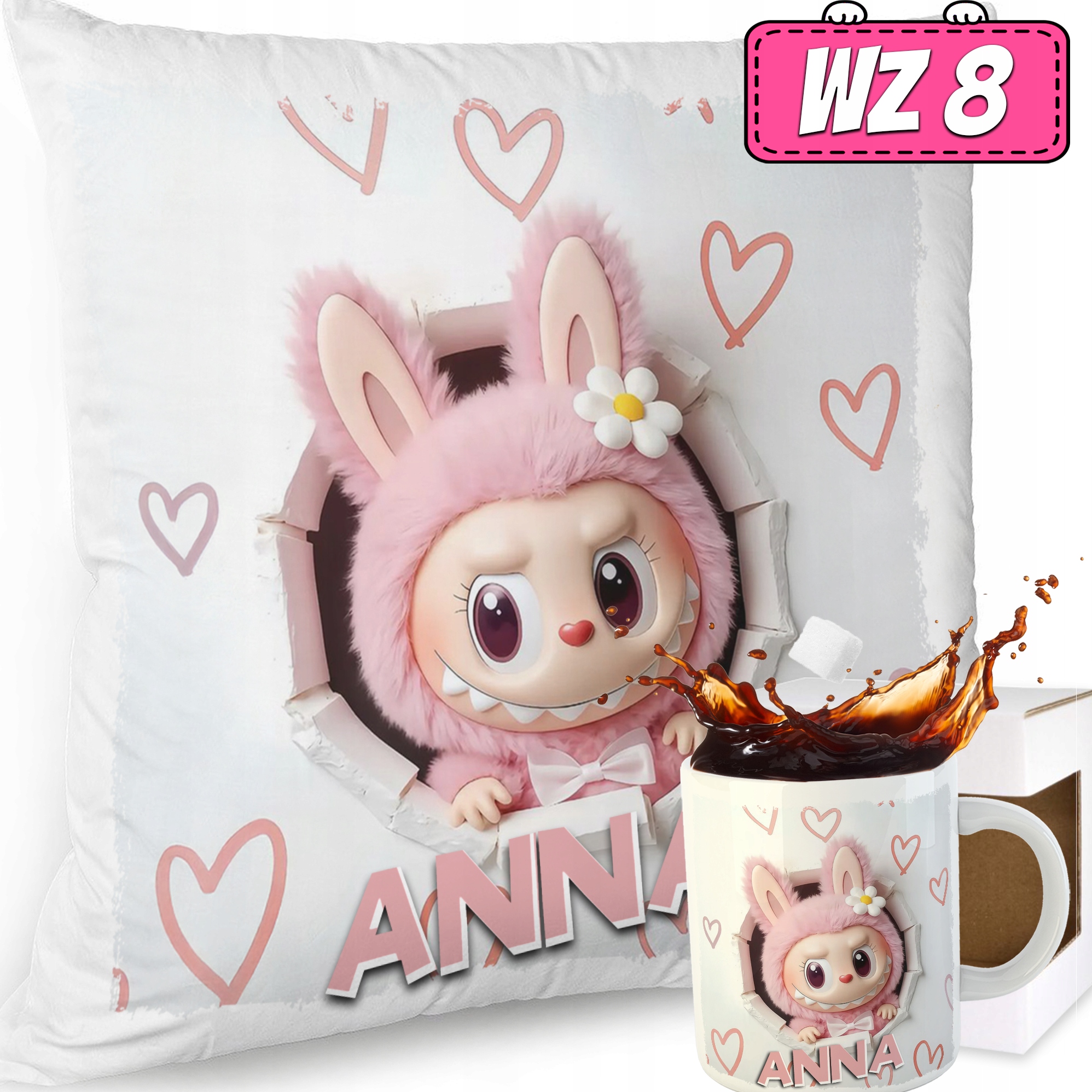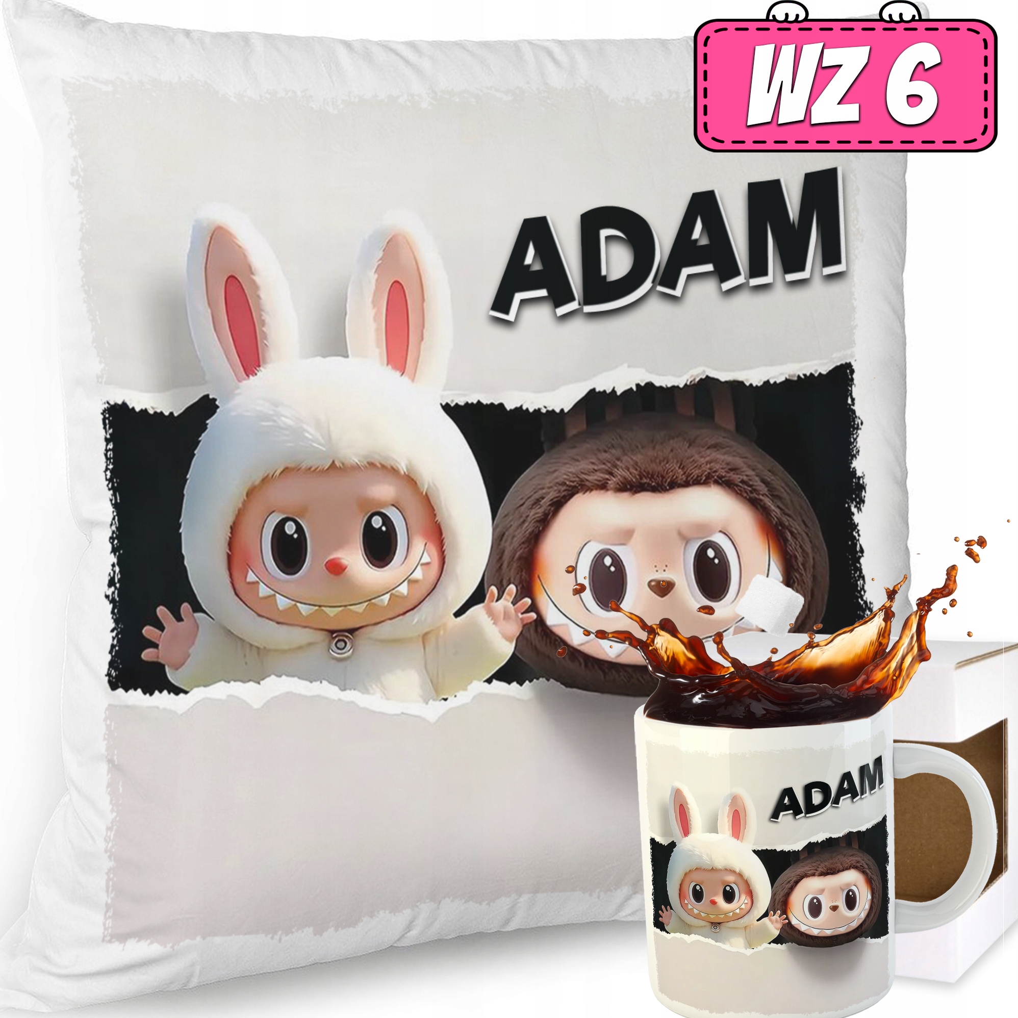 НАБІР ПОДУШКА КРУЖКА SWEET MONSTER LABUBU DOLL ПАТТЕРНИ ПОДАРУНОК НАЗВА
