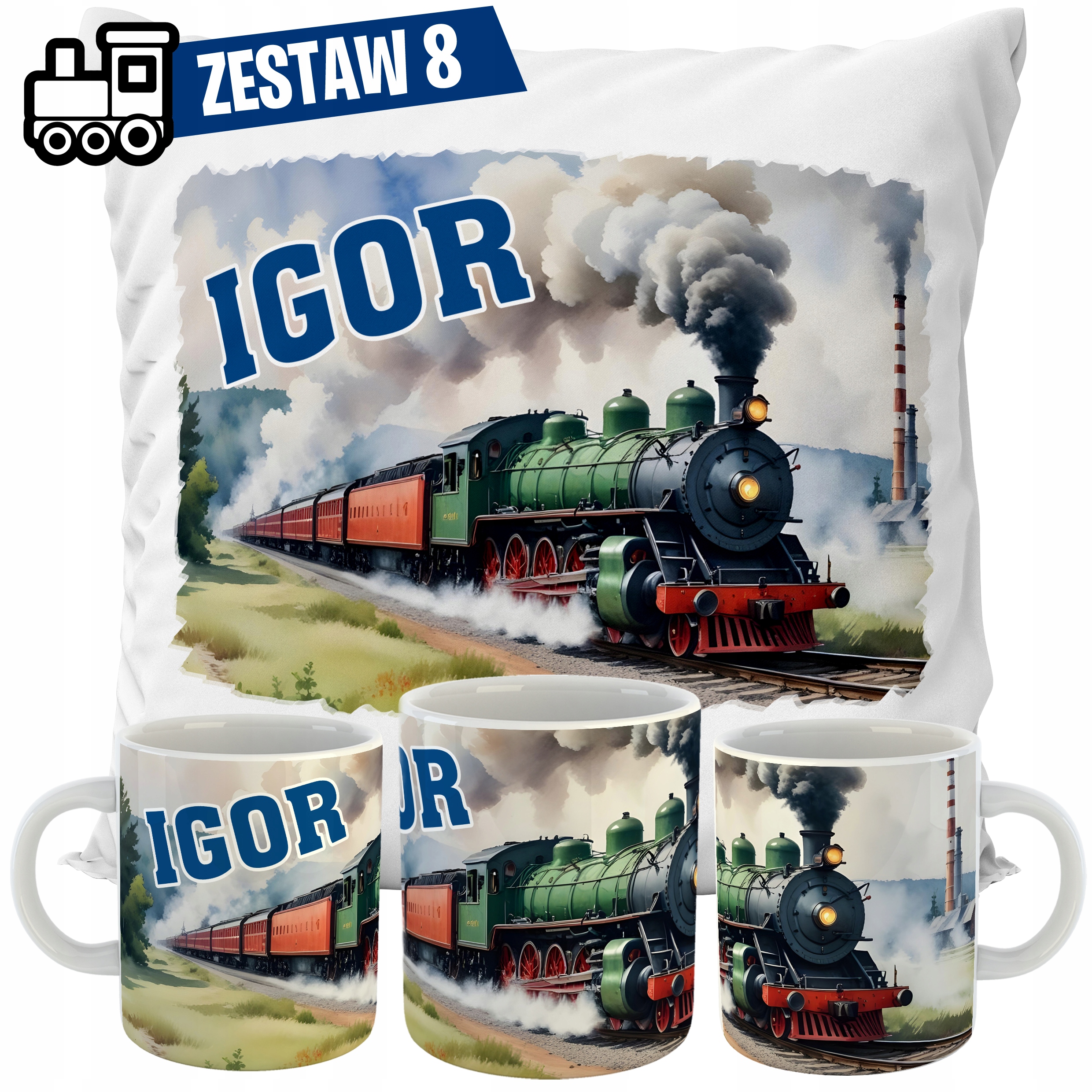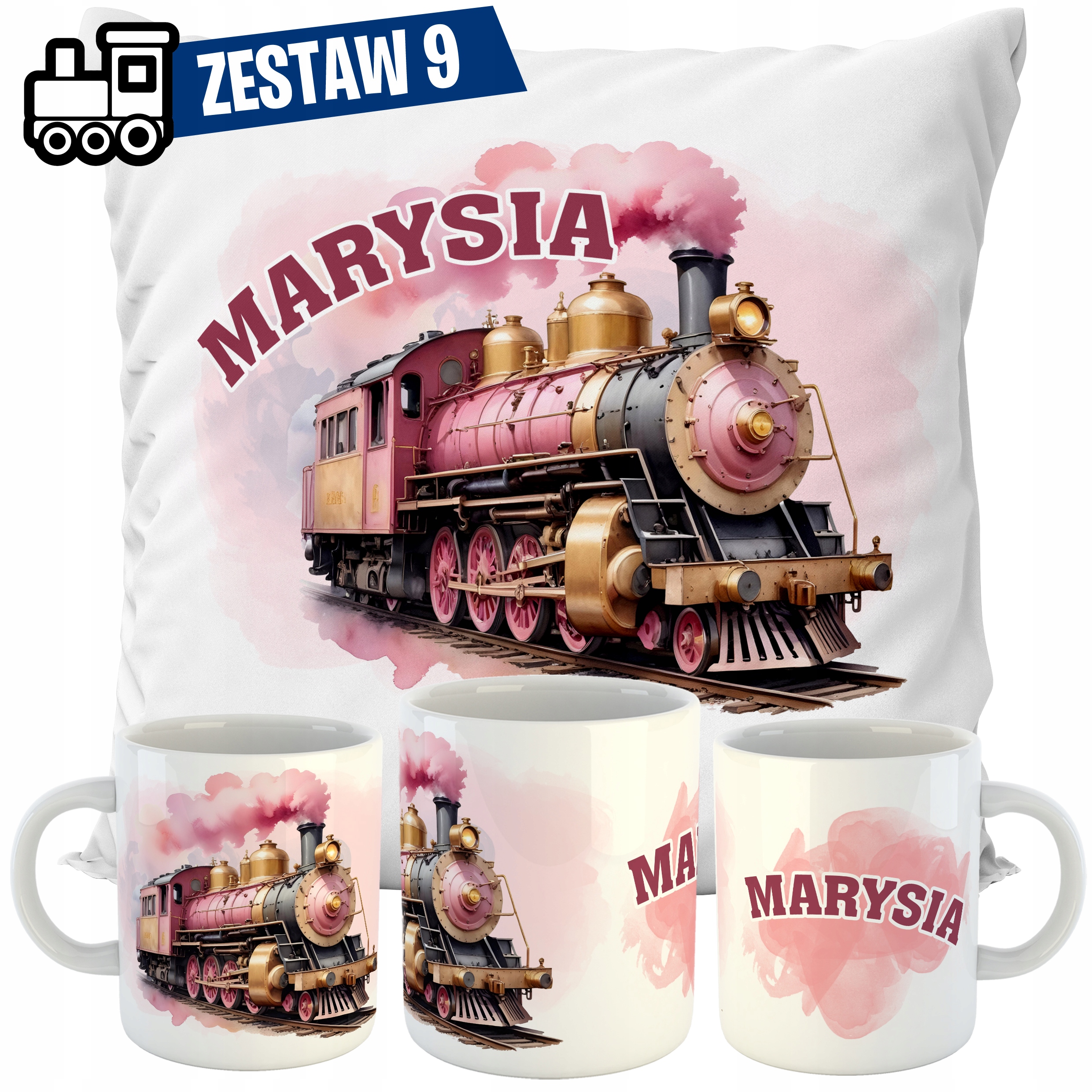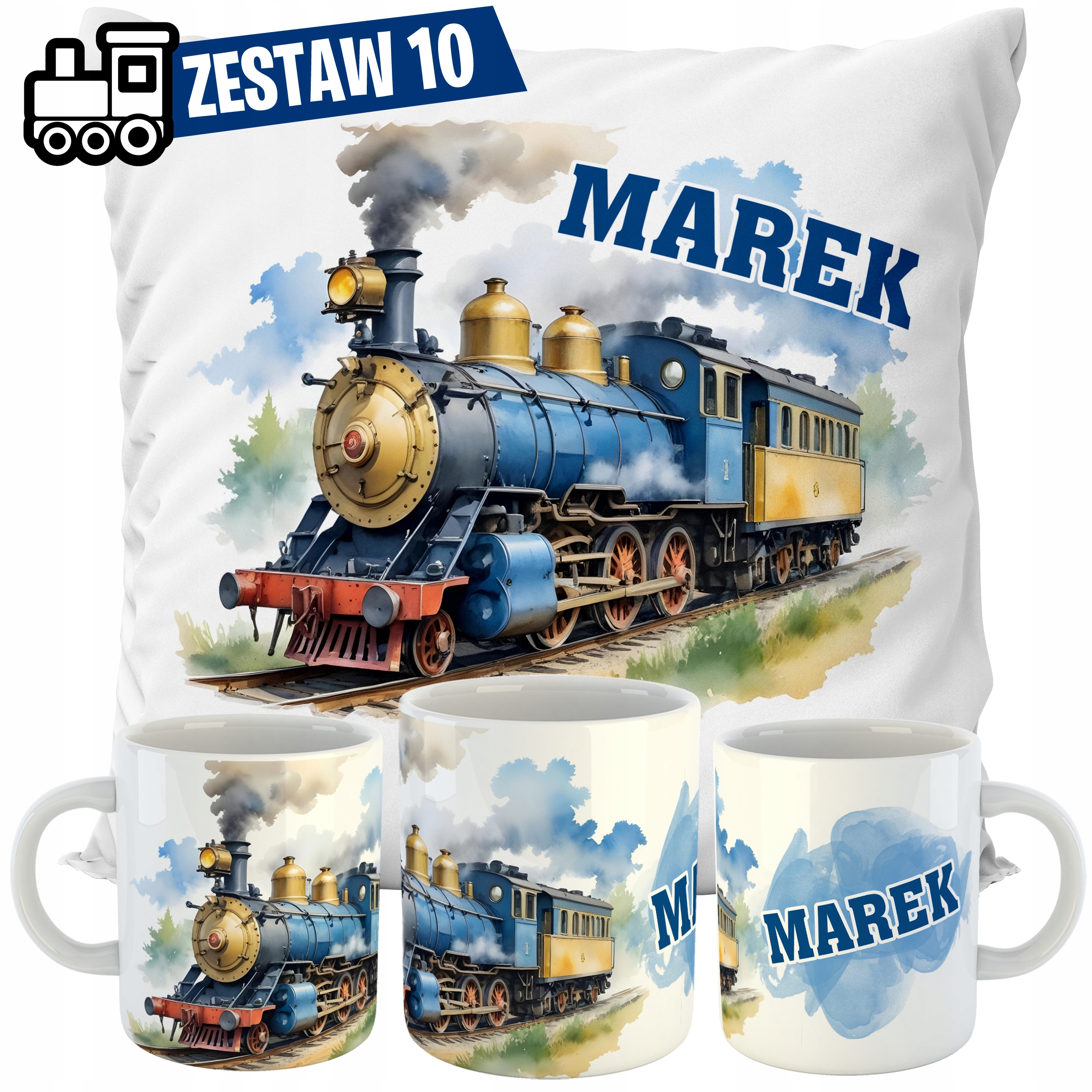 Унікальний набір подушки + кружок з мотивом поїзда + ваше ім’я!