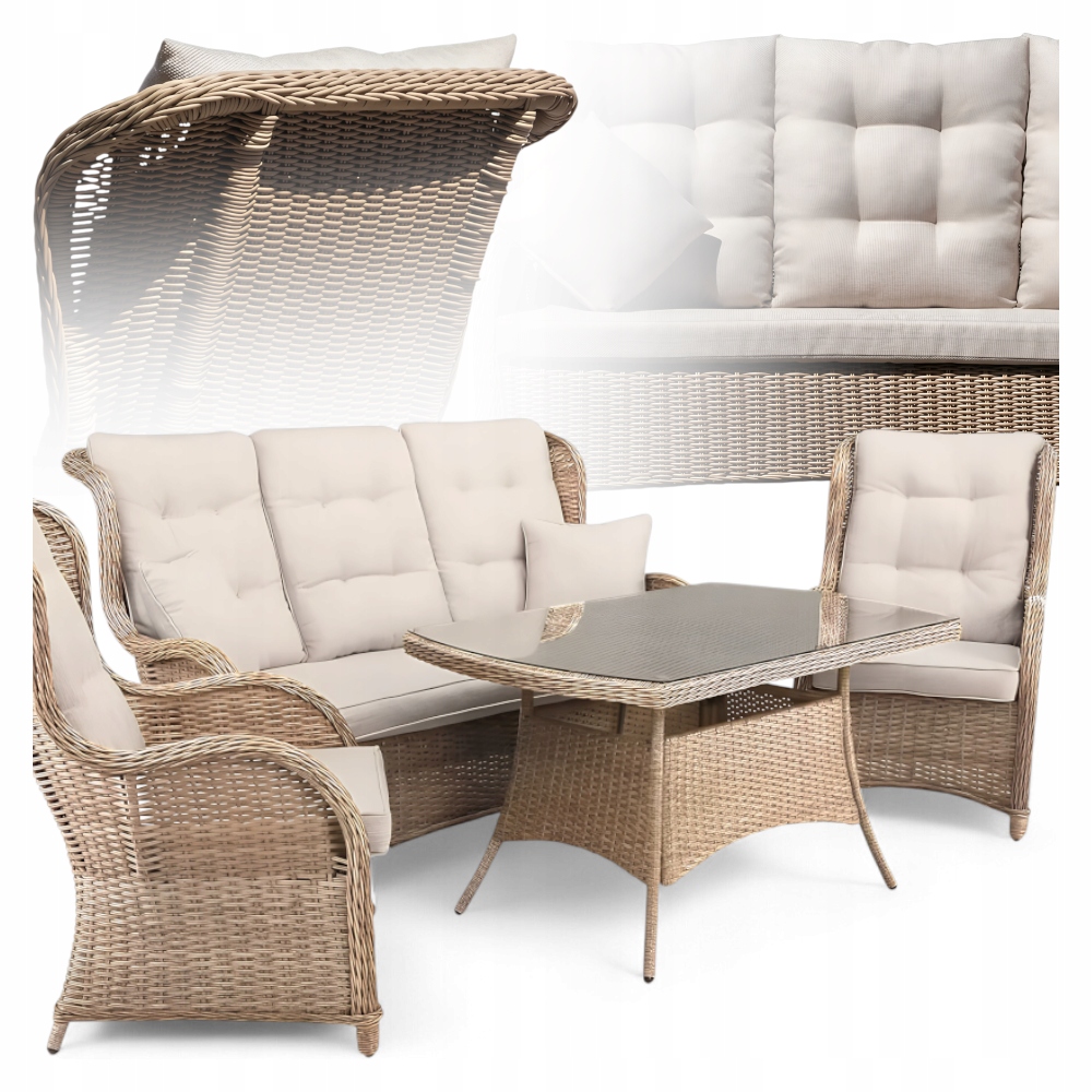 - це комбінація ергономічного комфорту з міцним матеріалом та елегантним виглядом. Комплект включає диван з 3-х осіб , два широких сидінь та великий таблиця . Кожен елемент був розроблений для комфорту - високі спинки, товсті подушки та просторий верх, робить цей набір ідеальним місцем для сімейних вечеря, ранкової кави або вечірніх розмов під зірками ✨🌙☕