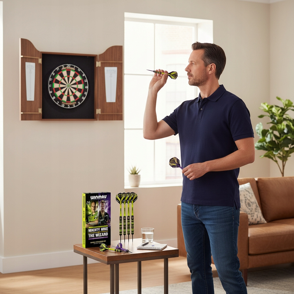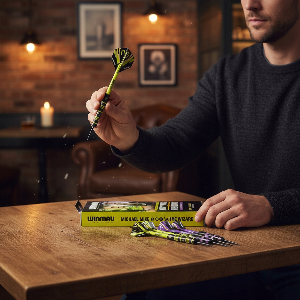 - 🧙 The Wizard Edition: Три фірмові дротики Саймона Вітлока в темно-чорному та фіолетовому дизайні з дротиками Wizard.