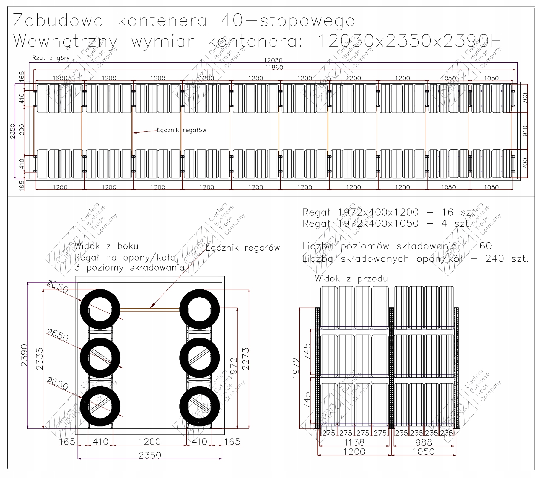 Система стійки адаптована до 20 -дюймового контейнера з розмірами в межах: 12030x2350x2390 мм (dł/wid/wys).