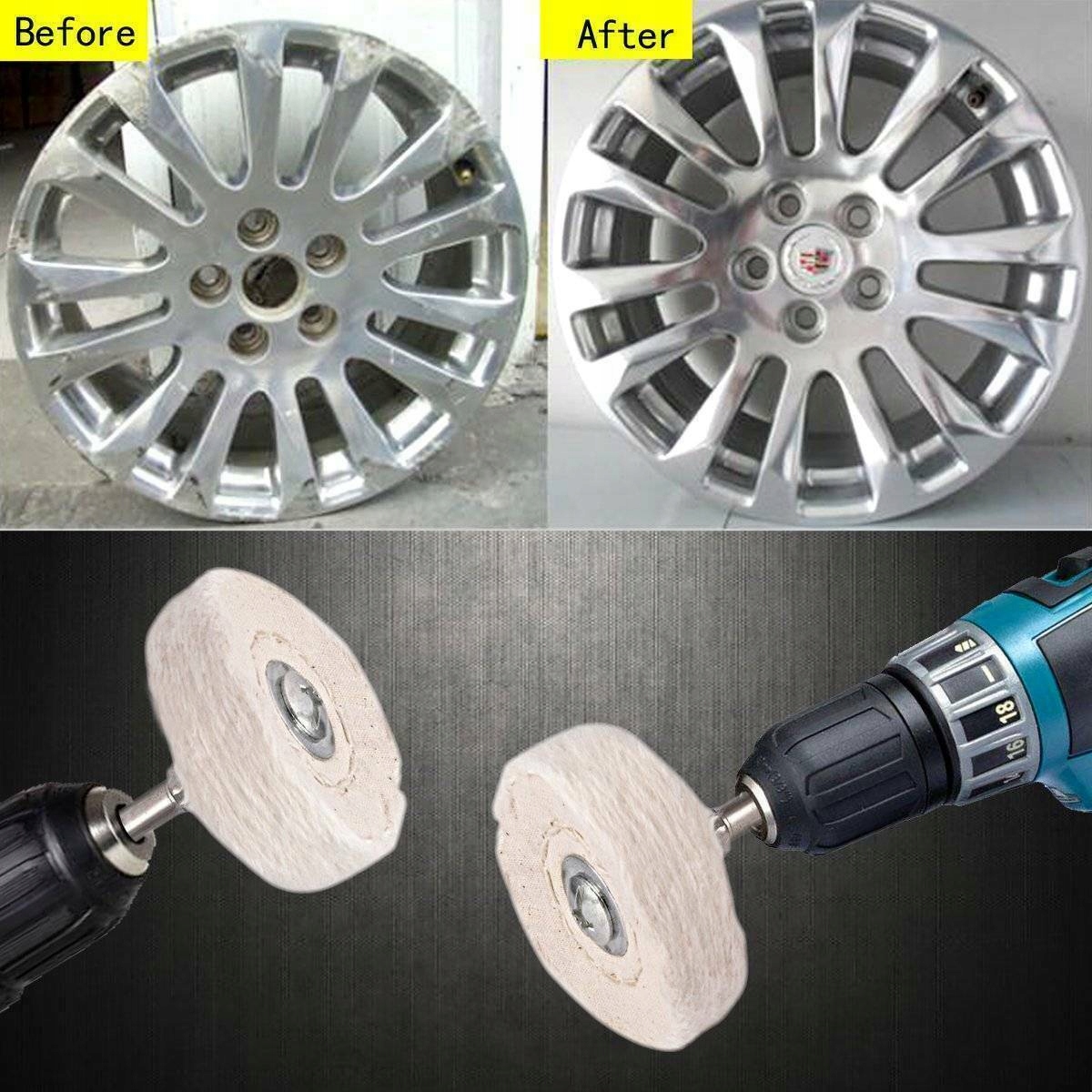 ✅【Повний і професійний набір для полірування】 Різні форми, конус, колона, круглий стіл, гриб і коло, видаляє всі види поверхневого окислення, іржі, смоли та бруду, 9 різних форм і розмірів полірувального диска, щоб допомогти вам полірувати різні елементи, будь-який розмір можна відрегулювати свердла та легко полірувати поглиблені та недоступні ділянки ободів, що значно полегшує процес полірування.
