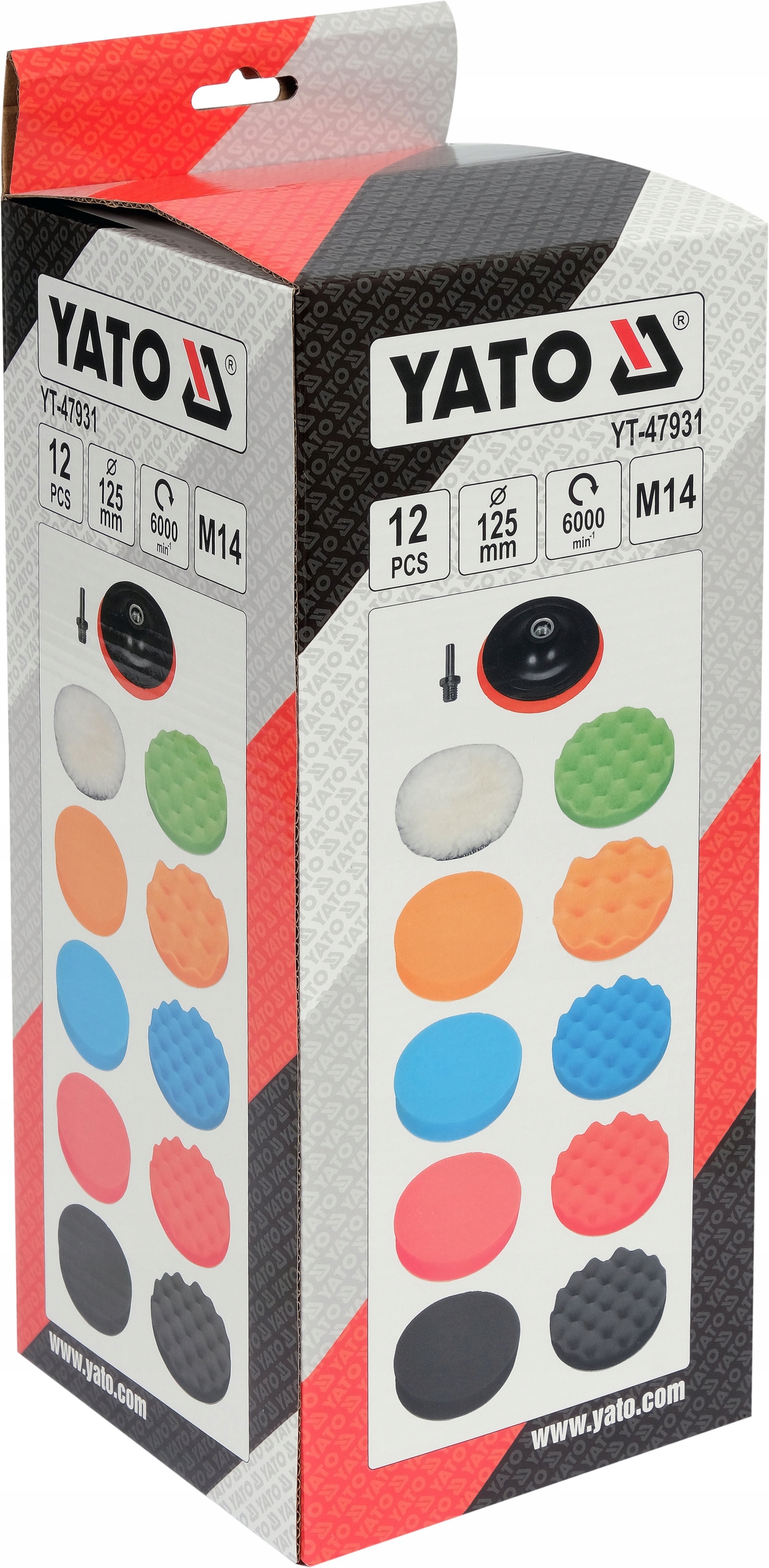 НАБІР ПОЛІРУВАЛЬНИХ ГУБОК YATO 125ММ M14 12 ШТ.