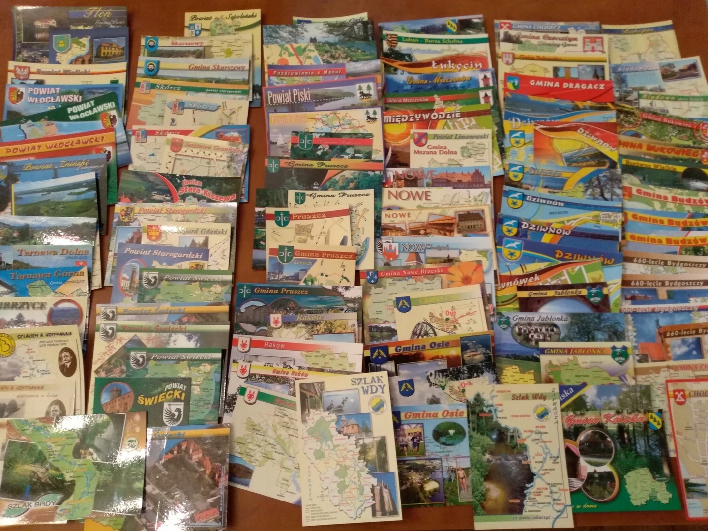 Набір із 100 листівок із зображенням різних куточків Польщі з картами найближчої чи ширшої території.