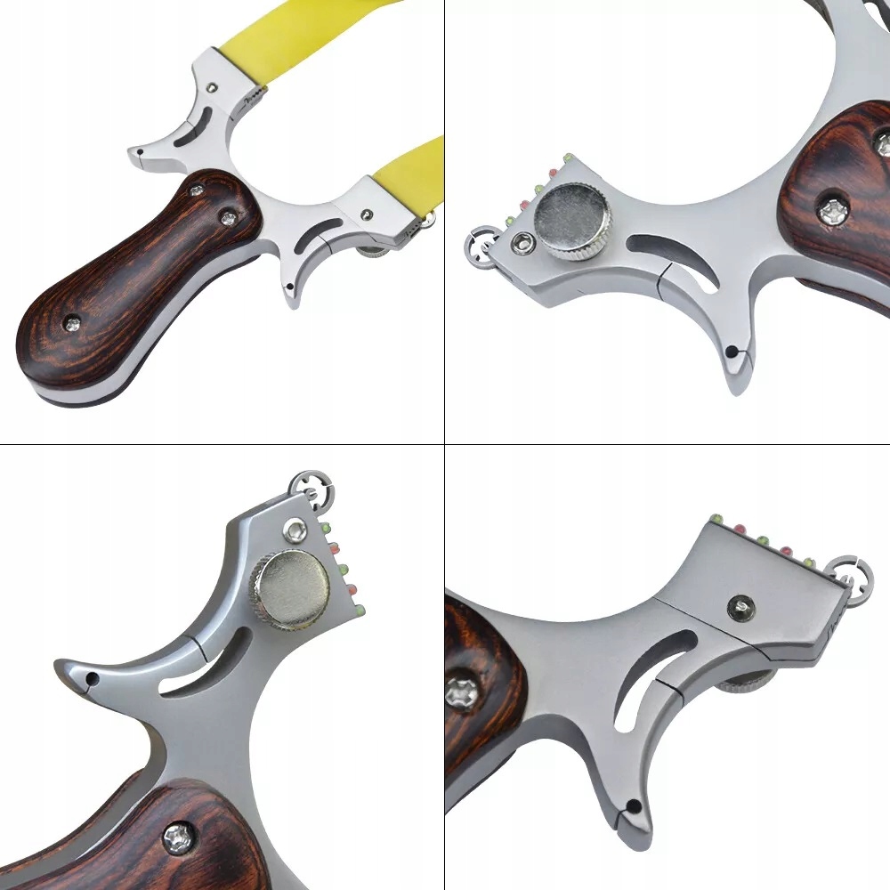 Разивний тактичний рогат: постачається з сильними змінними стрічками різної товщини. Приціли з нержавіючої сталі допомагають любителям та початківцям практикувати та цілі цілі. Повна зйомка в різних сценах.