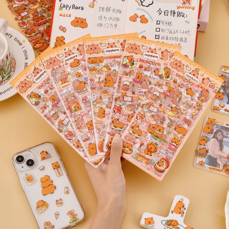 Капібара Само -адгезивні наклейки - 6 аркушів у наборі