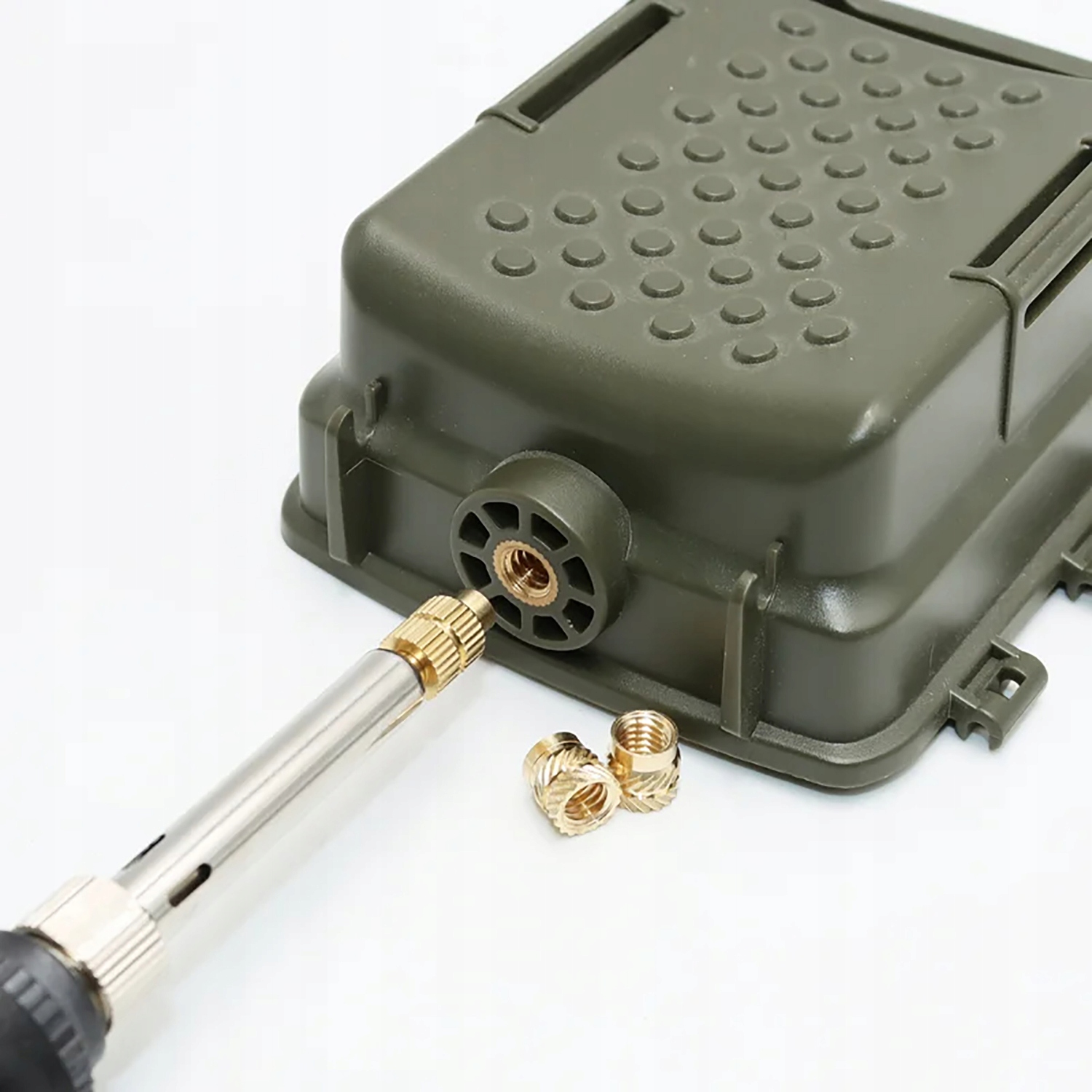 Температурний термонагрівач: наш нагрівач розроблено спеціально для термоплавлення різьбових вставок. Оснащений можливістю регулювання температури, він дозволяє підлаштовувати параметри під різні матеріали, що мінімізує ризик пошкодження друку під час розтушовування. Зручний дизайн робить роботу швидкою та безпечною.