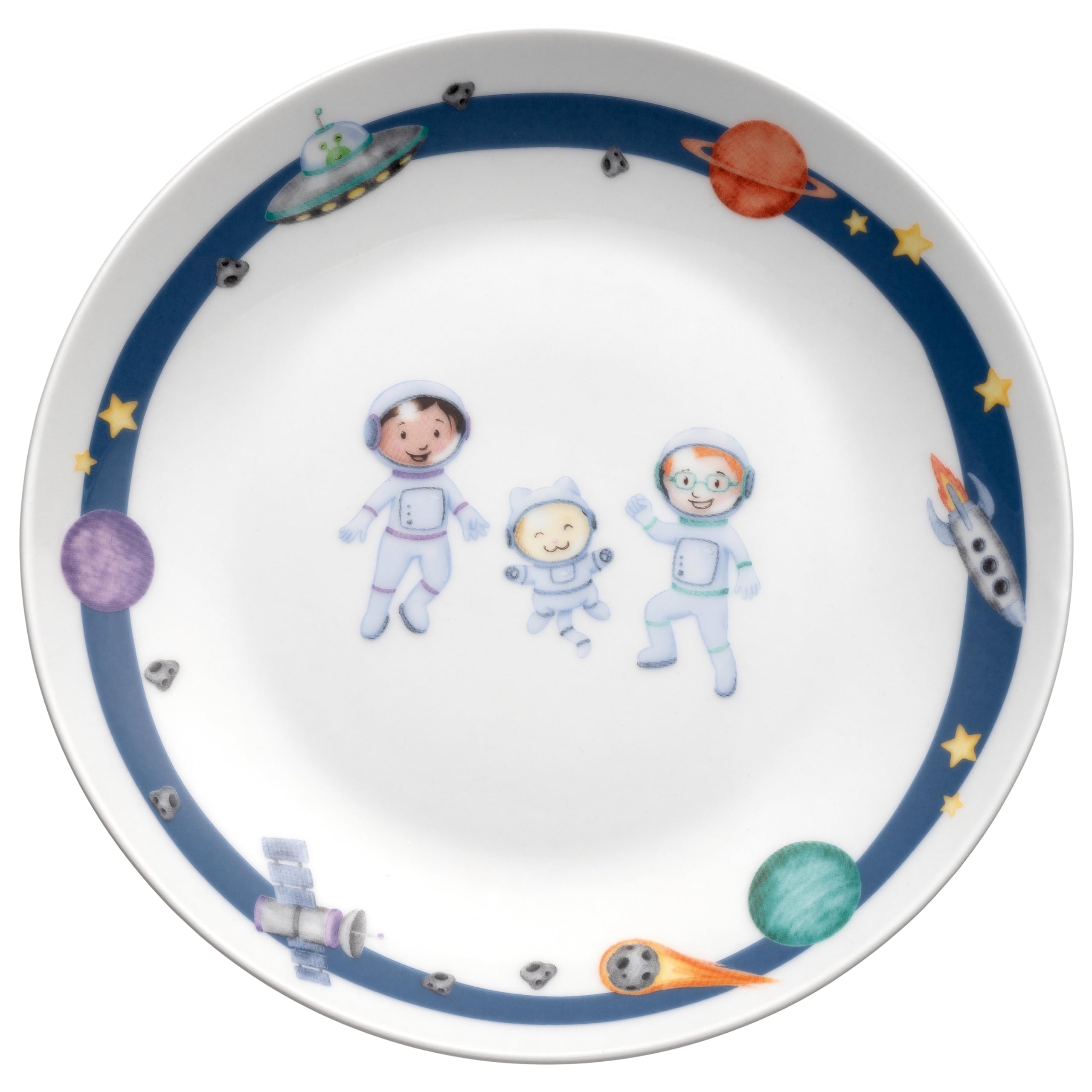 Набір дитячого посуду LEONARDO HOME Bambini Avventura — ідеальний вибір для маленьких дослідників. Виготовлений з високоякісної порцеляни з космічним мотивом космонавтів і ракет, цей набір із 3 предметів включає тарілку, миску та чашку. Підходить для миття в посудомийній машині та для використання в мікрохвильовій печі. Ідеальний посуд для повсякденного прийому їжі, який легко тримати навіть у маленьких дитячих ручках.