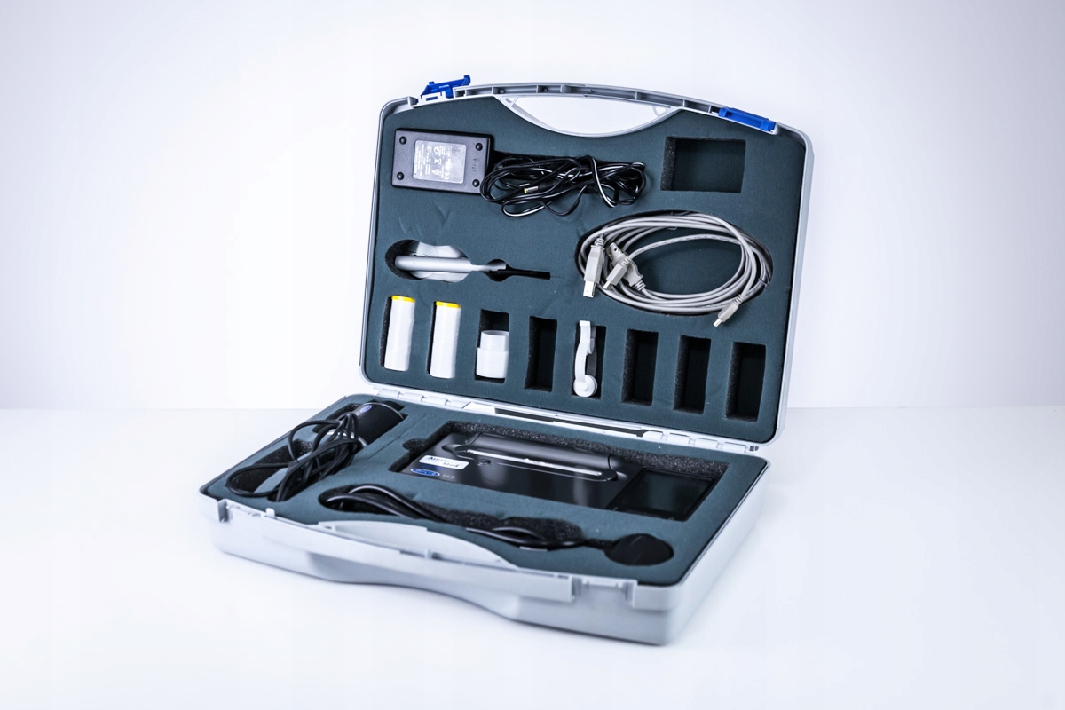 - Включено до набору: спірометр, спірометричний поперечний, шматочки, з'єднання кабелів, з’єднання кабелів, затискача для носа, джерела живлення та валізу транспорту.