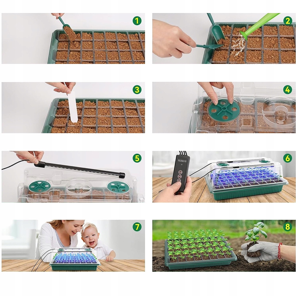 🌱 Завдяки повному спектру 360 °, він сприяє кращому зростанню розсади. Він має 3 режими освітлення, 3 часові функції (3 години/6 годин/12 годин) та 5 режимів яскравості.