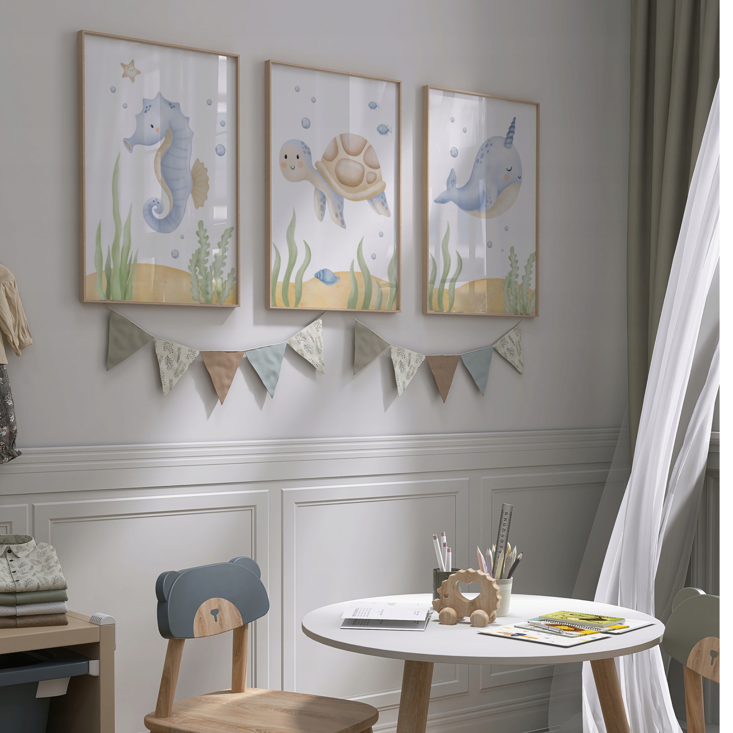 - Оживіть кімнату вашої дитини унікальним набір 3 плакати натхненні океаном та його мешканцями.