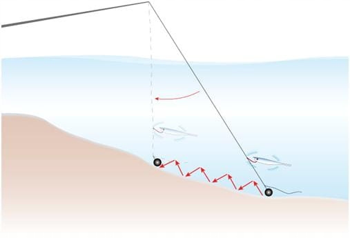 Вся філософія, робота з таким набором прихована в нашому зап'ясті. Після звинувачення в наборі ми дозволяємо йому вільно падати, і тут починається вся забава, а саме ми починаємо розірвати кінчик стрижня. Віструючими кінчиками, набір, встановлений на так -зведеному жорсткому, починає вібрувати і імпульс. Все це ставить нашу гумку у вертикальний рух. Практично ціле відбувається на місці, тобто наш набір не виходить знизу, а лише обережно стрибає. Усі рухи, які ми робимо, нагадуючи роботу Морміса під льодом. Звичайно, дозволені та вказані різні варіанти цієї теми. Конбонінг та перетягування делікатного набору з мінімальним прокаткою риболовної лінії. Ви, напевно, будете судити самі, що робити на своїй воді, скільки рибалок стільки методик провідних, і, як говорить стара приказка, "хто не поєднується, це не ловлять".