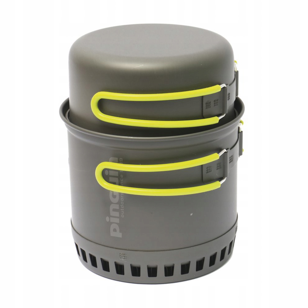 Набір посуду з чотирьох предметів для двох туристів, для приготування їжі просто неба. Найбільша каструля обладнана радіатором, який зменшує споживання палива.