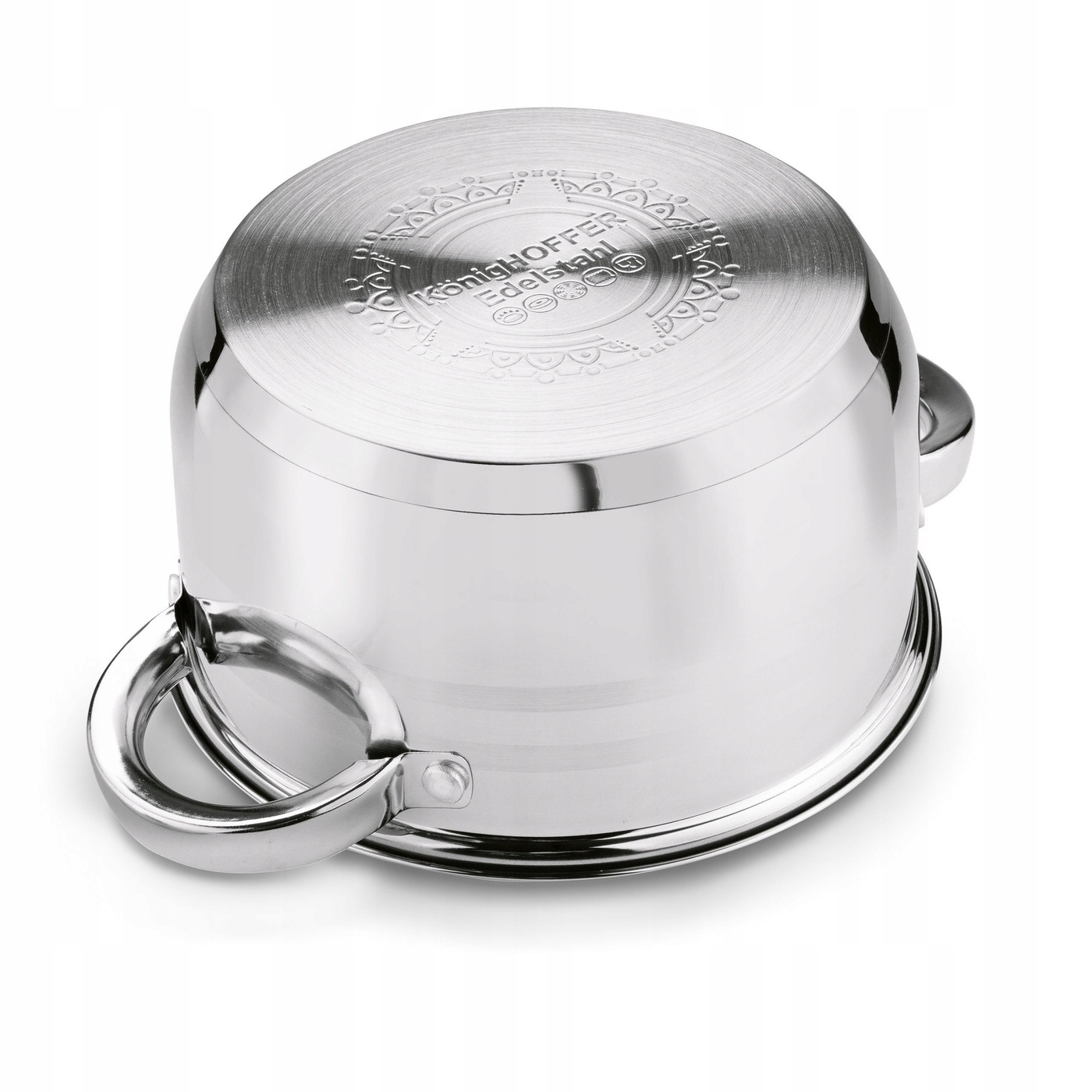 Набір каструль і сковорідок Konighoffer Soler з 10 елементів дозволить вам готувати та смажити енергозберігаючи. Різна місткість ємностей дозволить легко адаптувати весь процес створення страв до кількості та розміру апетиту гостей. Ви можете готувати страви на різну кількість людей в каструлях (об'єм: 1,8 / 2,6 / 4,6 л), каструлі (1,2 л) і сковороді (діаметр: 24 см). Смажачи на антипригарному покритті з меншою кількістю жиру, ви уникнете випадкового підгоряння їжі. Оскільки набір виготовлений з нержавіючої сталі, він підходить для зберігання їжі. Крім того, каструля, каструля і сковорода довго зберігають поглинене тепло і дозволяють готувати багато годин. Якість їх виготовлення гарантує вам довгі роки використання та дуже гарну довговічність. Ручки клепані і нагріваються повільніше. Каструлі з нержавіючої сталі для індукційних і газових Soler мають просту форму і прості в догляді. Набір працює з усіма типами плит завдяки багатошаровому дну. Також чудово підійде як подарунок коханій людині. Продукт рекомендований Ewa Wachowicz. Як амбасадор бренду Konighoffer, вона тепло та з усмішкою рекомендує його для домашнього використання. Разом з ним ви отримаєте свій рецепт для дому. Це один із найкращих варіантів у цій категорії!