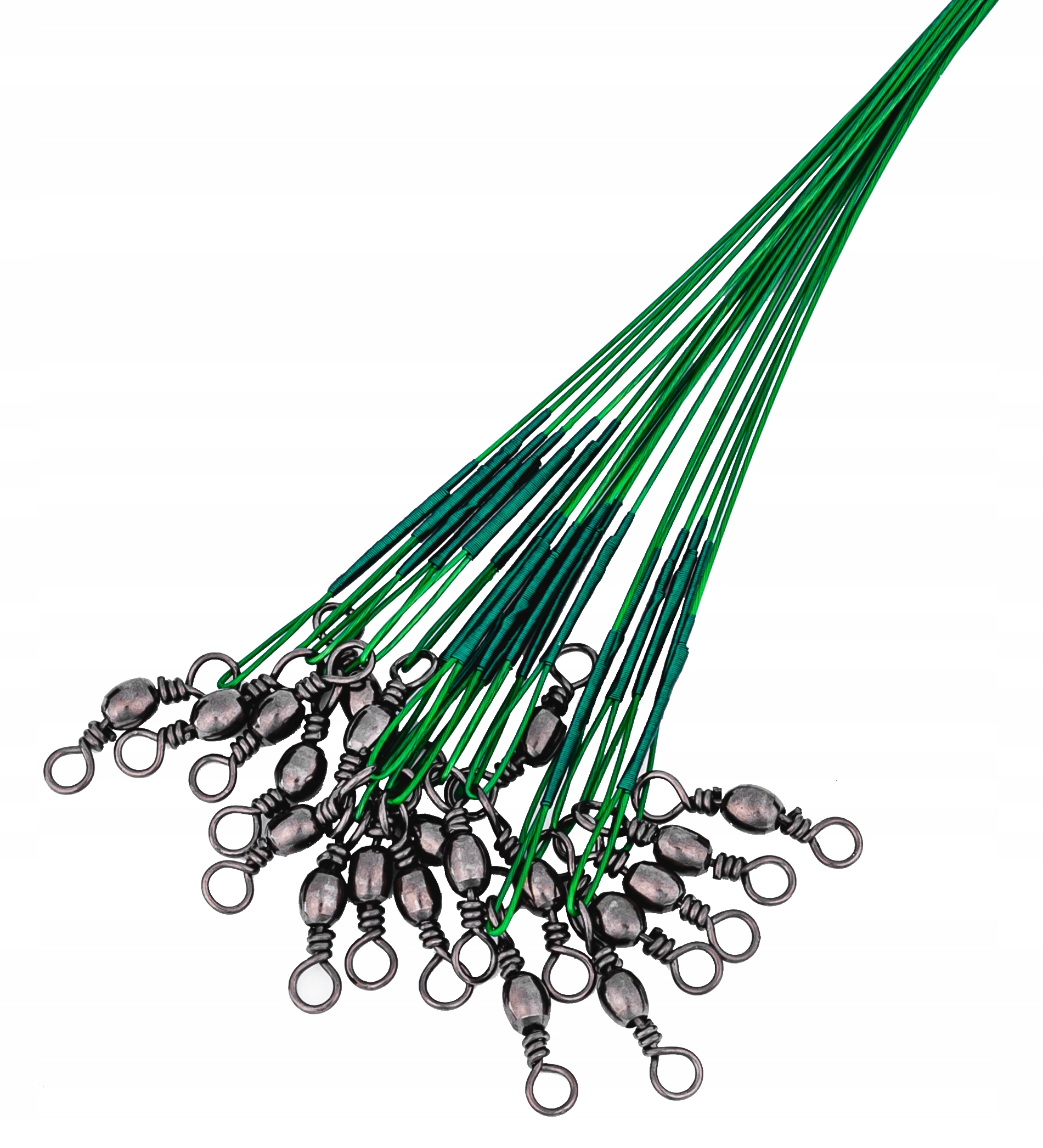 НАБІР СПІНІНГІВрізної довжини, які можна використовувати на спінінгах і на живця. Міцні поводки, оснащені вертлюжком і безпечною шпилькою: