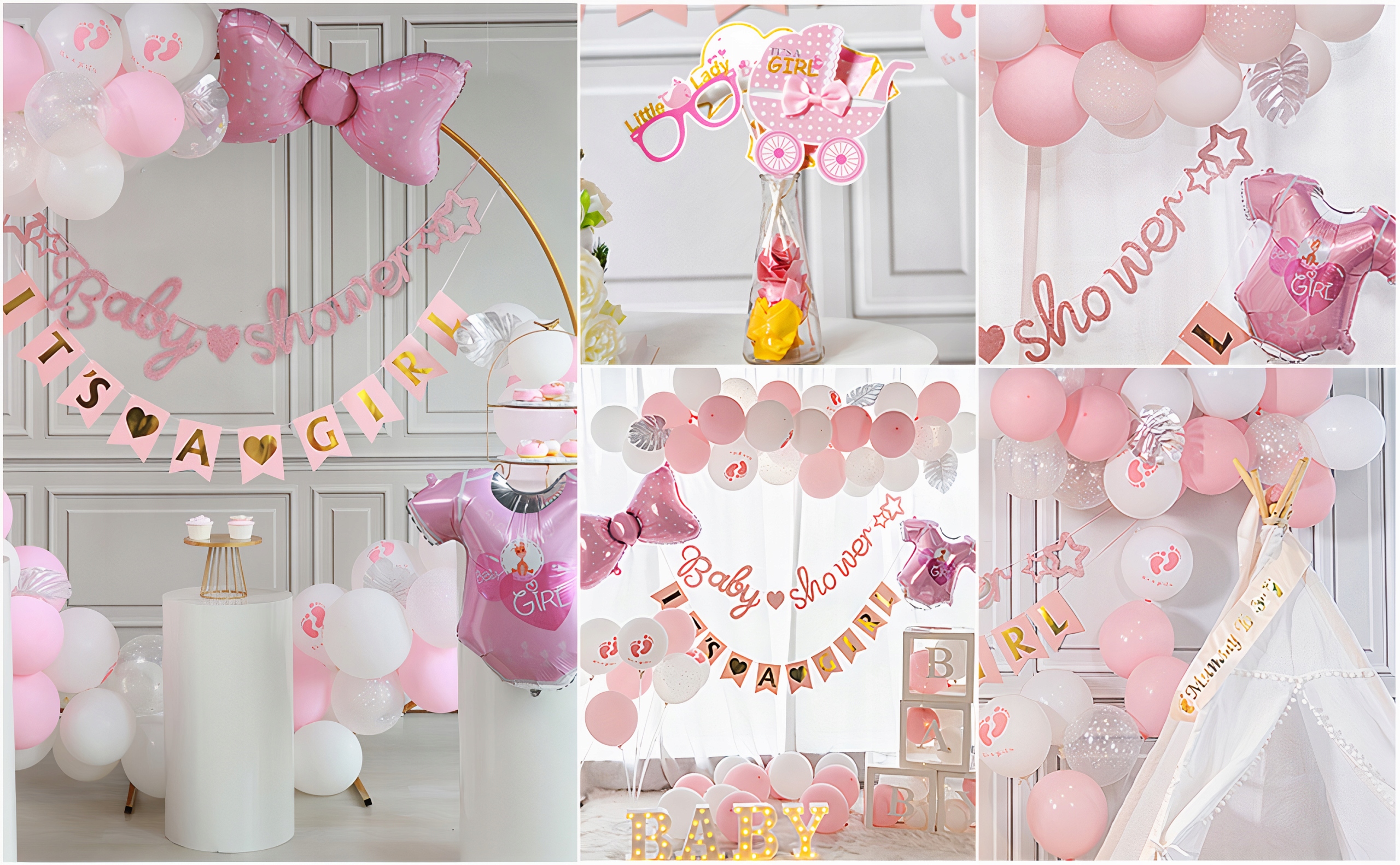 НАБІР ПОВІТРЯНИХ КУЛЬ BABY SHOWER ДЛЯ ДІВЧИНКИ РОЖЕВІ ПОВІТРЯНІ КУЛІ